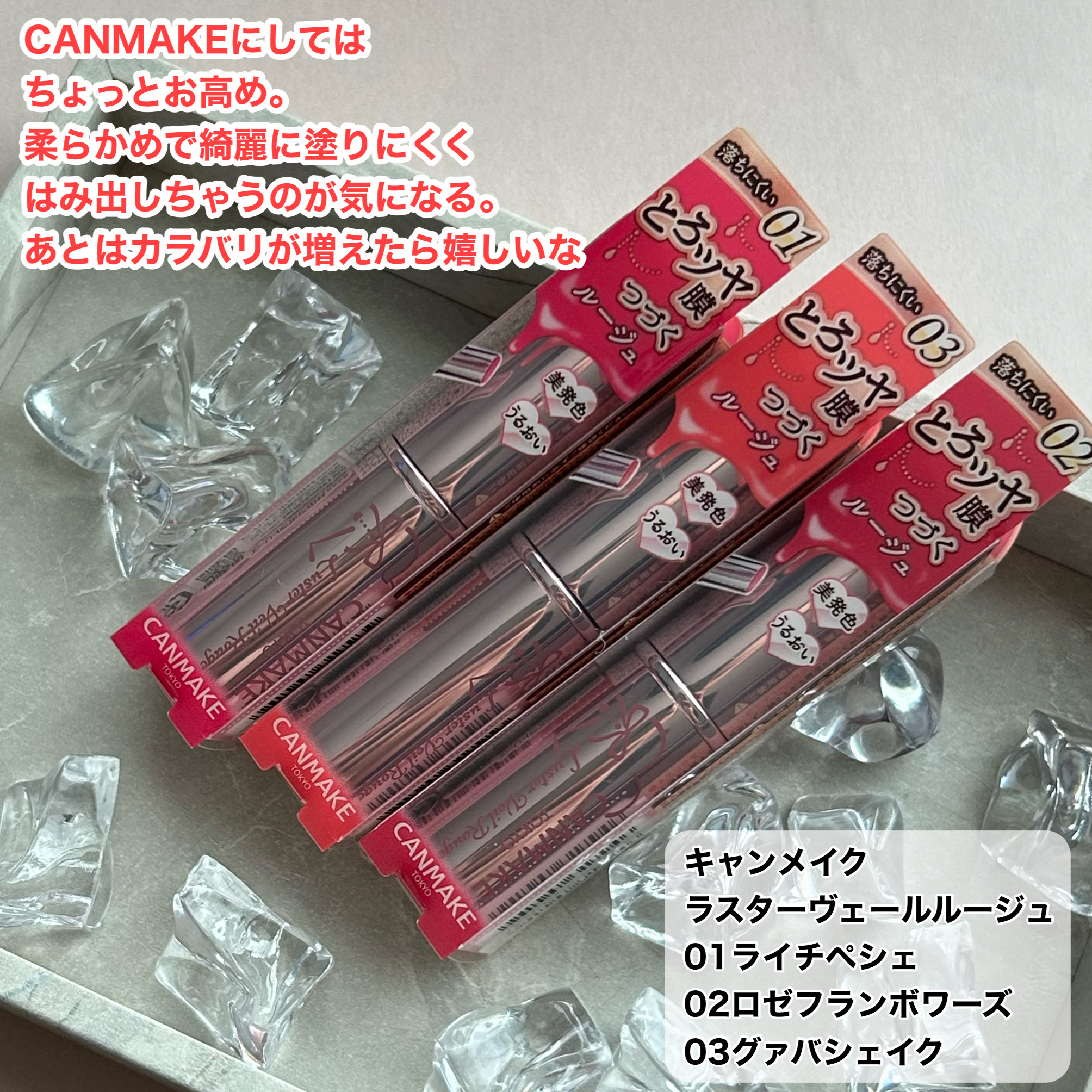 【バズ目前!?CANMAKE新作デパコス級むっちりツヤ感ティント🍑】 キャンメイク ラスターヴェールルージュ全3色 01ライチペシェ 02ロゼフランボワーズ 03グァバシェイク 各¥1,2988月下旬からLOFT、PLAZAにて発売中9月下旬...