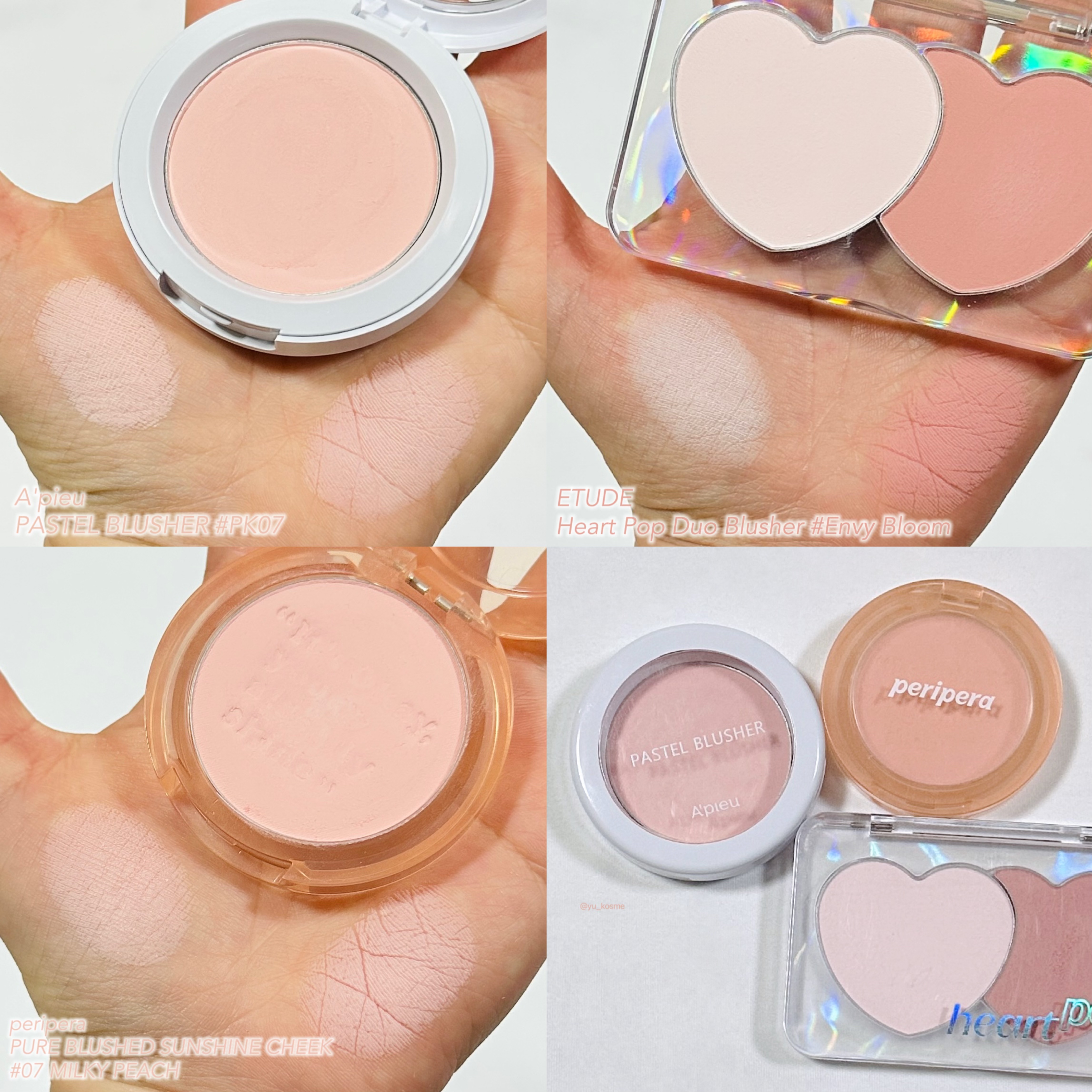 \ふわふわ白みピンクで中顔面短縮しちゃお🤍🩷/こんにちは。チーク収集が趣味の日没です🐰今日は中顔面短縮におすすめの、ふわっふわ白みピンクチークをご紹介します💜✧︎A’pieuアピューパステルブラッシャーPK07/VL02✧︎CLINIQUEチ...
