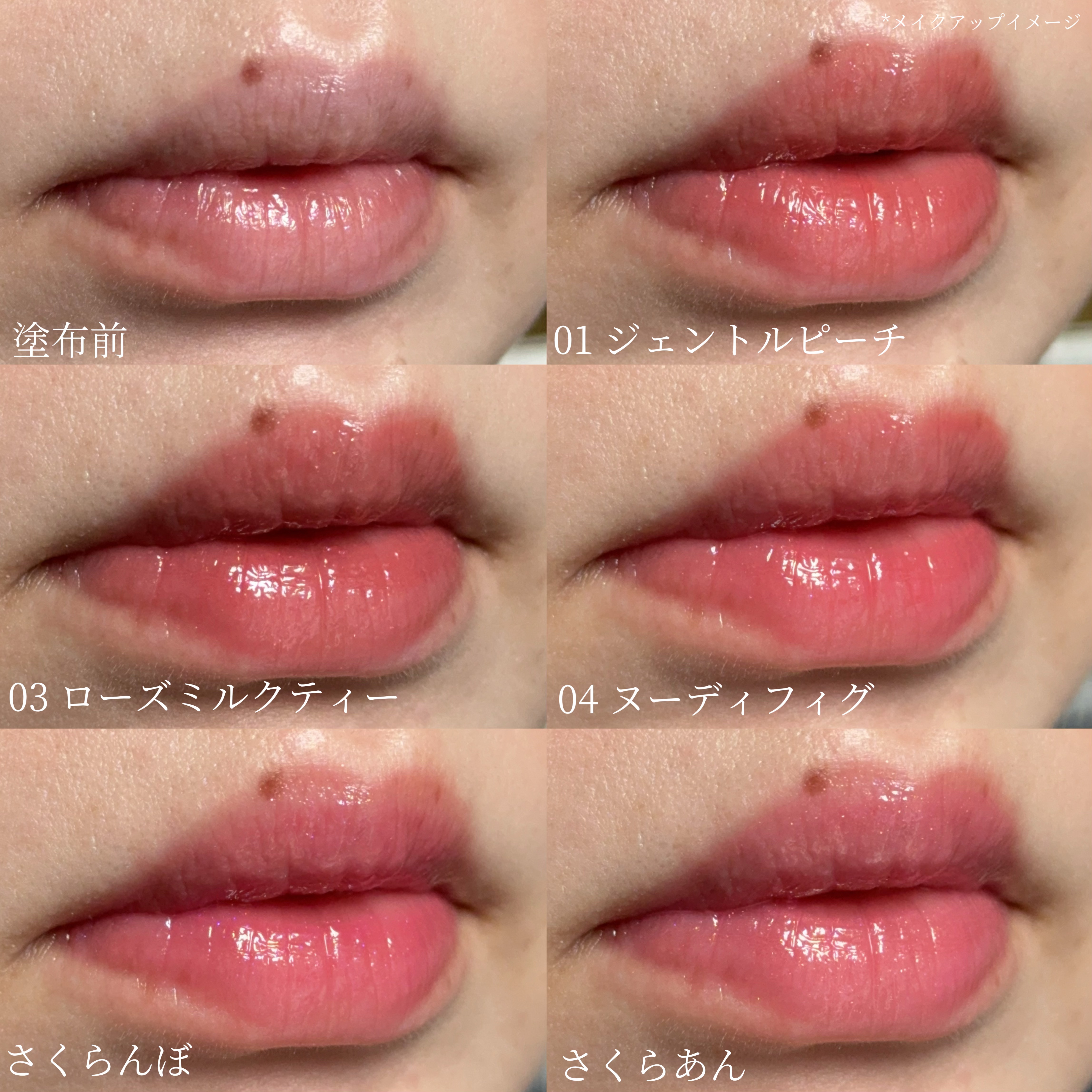 - <01 ジェントルピーチ> 水添ポリイソブテン、テトラ(ヒドロキシステアリン酸/イソステアリン酸)ジペンタエリスリチル、ヒドロキシステアリン酸エチルヘキシル、トリメリト酸トリトリデシル、水添ロジン酸メチル、ダイマージリノール酸(フィトステリル/イソステアリル/セチル/ステアリル/ベヘニル)、ジ安息香酸PG、合成ワックス、リンゴ酸ジイソステアリル、パラフィン、マカデミアナッツ脂肪酸フィトステリル、シリル化シリカ、イソステアリン酸ソルビタン、(VP/ヘキサデセン)コポリマー、酸化チタン、パルミチン酸デキストリン、マイクロクリスタリンワックス、トリイソステアリン酸ポリグリセリル-2、酸化鉄、赤202、黄5、ジイソステアリン酸ポリグリセリル-2、水、アルガニアスピノサ核油、ホホバ種子油、BG、サトウカエデエキス、フェノキシエタノール、アサイヤシ果実エキス、フラガリアチロエンシス果実エキス、クコ果実エキス、クロミグワ果実エキス、クロフサスグリ果実エキス、セイヨウヤブイチゴ果実エキス、キイチゴエキス、ローブッシュブルーベリー果実エキス、クランベリー果実エキス、ビルベリー果実エキス、エチルヘキシルグリセリン <02 アップルシナモン> 水添ポリイソブテン、テトラ(ヒドロキシステアリン酸/イソステアリン酸)ジペンタエリスリチル、ヒドロキシステアリン酸エチルヘキシル、トリメリト酸トリトリデシル、水添ロジン酸メチル、ダイマージリノール酸(フィトステリル/イソステアリル/セチル/ステアリル/ベヘニル)、ジ安息香酸PG、合成ワックス、パラフィン、リンゴ酸ジイソステアリル、マカデミアナッツ脂肪酸フィトステリル、シリル化シリカ、イソステアリン酸ソルビタン、(VP/ヘキサデセン)コポリマー、トリイソステアリン酸ポリグリセリル-2、パルミチン酸デキストリン、酸化鉄、マイクロクリスタリンワックス、酸化チタン、赤202、ジイソステアリン酸ポリグリセリル-2、黄5、水、アルガニアスピノサ核油、ホホバ種子油、BG、サトウカエデエキス、フェノキシエタノール、アサイヤシ果実エキス、フラガリアチロエンシス果実エキス、クコ果実エキス、クロミグワ果実エキス、クロフサスグリ果実エキス、セイヨウヤブイチゴ果実エキス、キイチゴエキス、ローブッシュブルーベリー果実エキス、クランベリー果実エキス、ビルベリー果実エキス、エチルヘキシルグリセリン <03 ローズミルクティー> 水添ポリイソブテン、テトラ(ヒドロキシステアリン酸/イソステアリン酸)ジペンタエリスリチル、ヒドロキシステアリン酸エチルヘキシル、トリメリト酸トリトリデシル、水添ロジン酸メチル、ダイマージリノール酸(フィトステリル/イソステアリル/セチル/ステアリル/ベヘニル)、ジ安息香酸PG、合成ワックス、リンゴ酸ジイソステアリル、パラフィン、マカデミアナッツ脂肪酸フィトステリル、シリル化シリカ、イソステアリン酸ソルビタン、(VP/ヘキサデセン)コポリマー、酸化チタン、トリイソステアリン酸ポリグリセリル-2、パルミチン酸デキストリン、マイクロクリスタリンワックス、酸化鉄、黄4、赤202、ジイソステアリン酸ポリグリセリル-2、青1、水、アルガニアスピノサ核油、ホホバ種子油、BG、サトウカエデエキス、フェノキシエタノール、アサイヤシ果実エキス、フラガリアチロエンシス果実エキス、クコ果実エキス、クロミグワ果実エキス、クロフサスグリ果実エキス、セイヨウヤブイチゴ果実エキス、キイチゴエキス、ローブッシュブルーベリー果実エキス、クランベリー果実エキス、ビルベリー果実エキス、エチルヘキシルグリセリン <04 ヌーディーフィグ> 水添ポリイソブテン、テトラ(ヒドロキシステアリン酸/イソステアリン酸)ジペンタエリスリチル、ヒドロキシステアリン酸エチルヘキシル、トリメリト酸トリトリデシル、水添ロジン酸メチル、ダイマージリノール酸(フィトステリル/イソステアリル/セチル/ステアリル/ベヘニル)、ジ安息香酸PG、合成ワックス、リンゴ酸ジイソステアリル、パラフィン、マカデミアナッツ脂肪酸フィトステリル、シリル化シリカ、イソステアリン酸ソルビタン、(VP/ヘキサデセン)コポリマー、酸化チタン、パルミチン酸デキストリン、マイクロクリスタリンワックス、トリイソステアリン酸ポリグリセリル-2、酸化鉄、黄4、赤202、ジイソステアリン酸ポリグリセリル-2、水、アルガニアスピノサ核油、ホホバ種子油、BG、サトウカエデエキス、フェノキシエタノール、アサイヤシ果実エキス、フラガリアチロエンシス果実エキス、クコ果実エキス、クロミグワ果実エキス、クロフサスグリ果実エキス、セイヨウヤブイチゴ果実エキス、キイチゴエキス、ローブッシュブルーベリー果実エキス、クランベリー果実エキス、ビルベリー果実エキス、エチルヘキシルグリセリン <05 シュガープラム> 水添ポリイソブテン、テトラ(ヒドロキシステアリン酸/イソステアリン酸)ジペンタエリスリチル、ヒドロキシステアリン酸