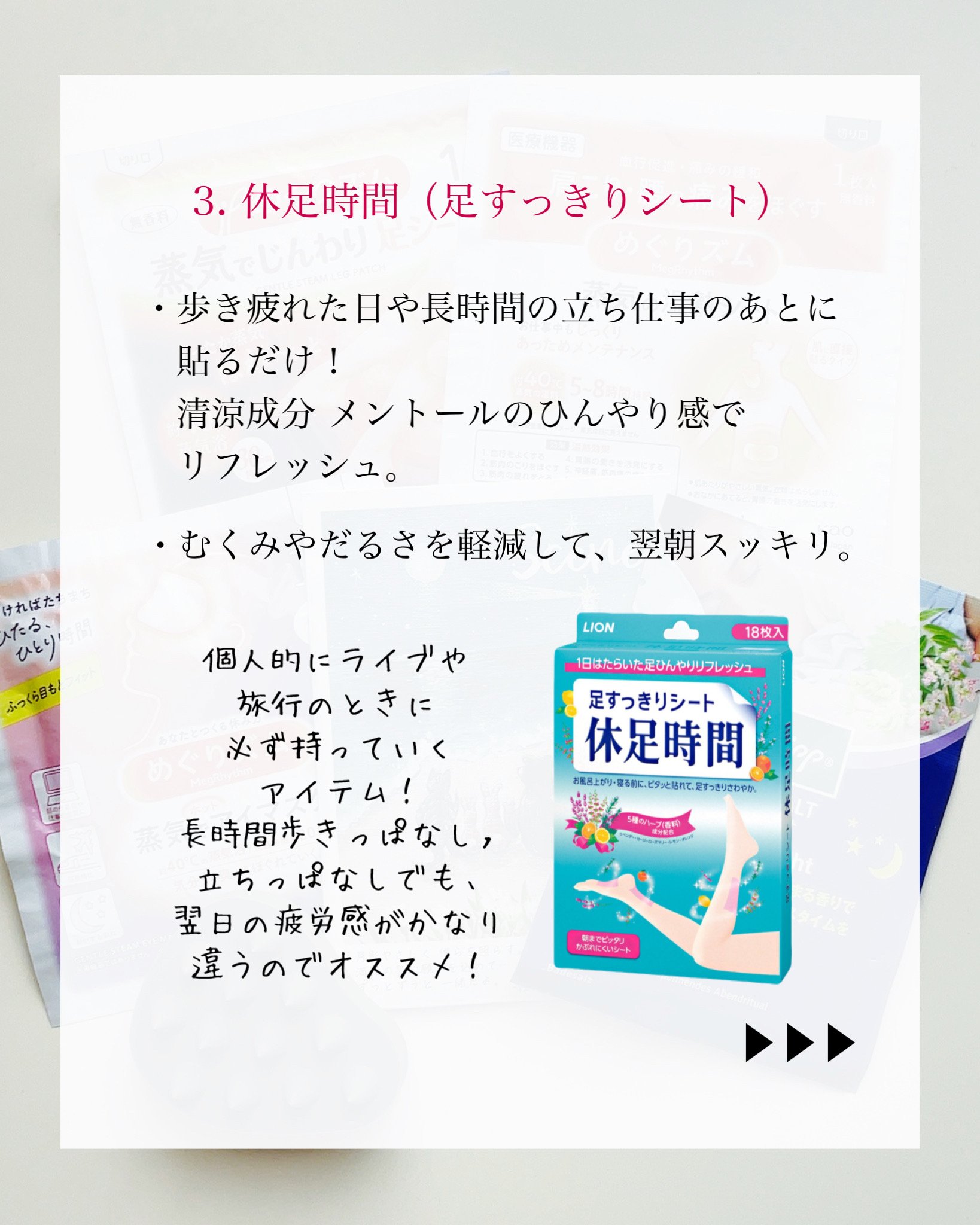もっと見るおすすめアイテム休足時間×レッグ・フットケア