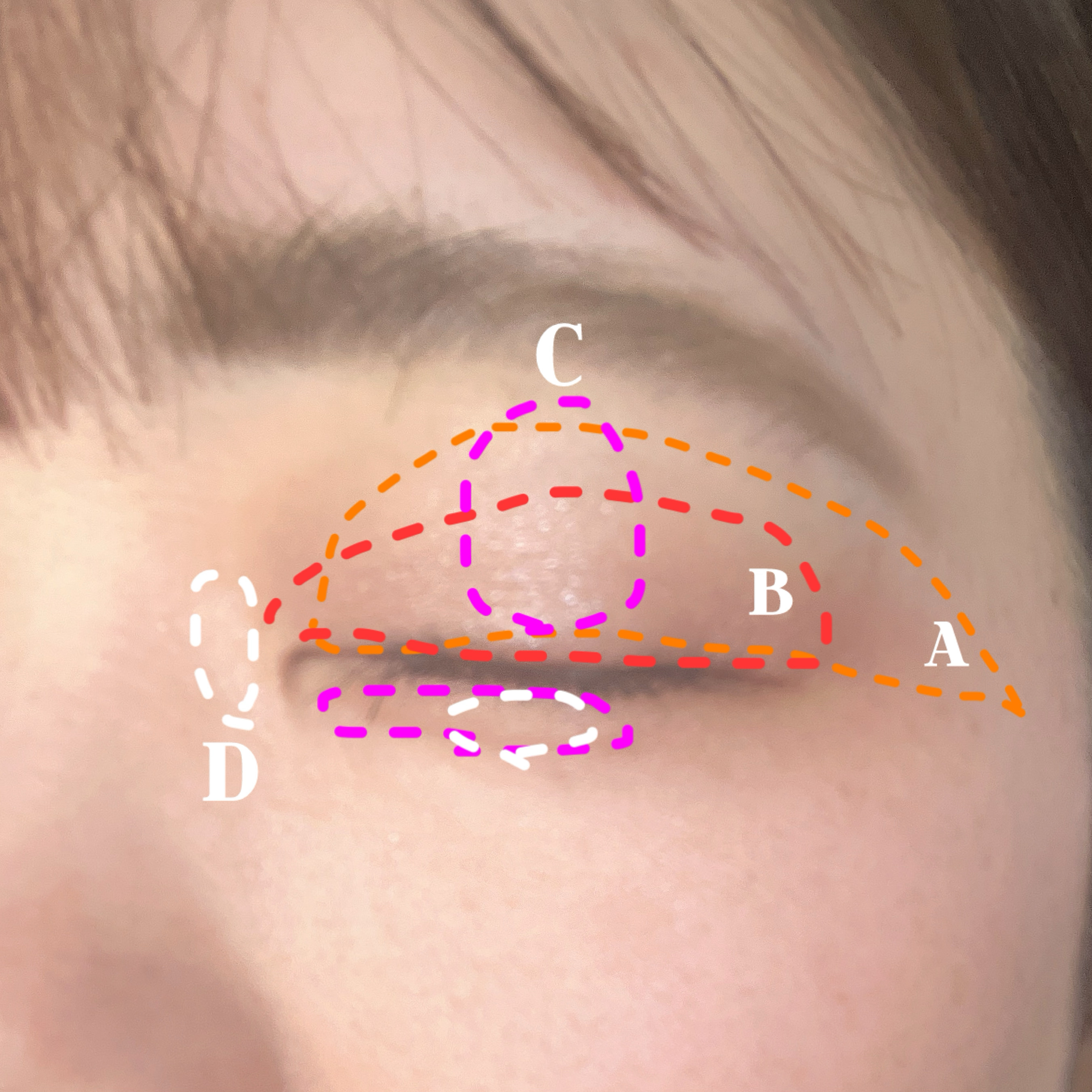 ちなみに、左上のカラーて使いどこある?!って思ってたけどこのカラーがとっても大切です✨ 他3色と混ぜることで肌馴染みがかなり良くなります! ①鼻根〜鼻筋 左上と左下を混ぜてアイシャドウブラシ(細めの筆)で軽く乗せる ②鼻先 左上を小指や細い筆で鼻先に点おき 鼻の下の部分(チークなるとこ)には右上のピンクを乗せたりしてます! ③目頭 左上+右下 or 左上+左下を混ぜてのせる 目頭側のアイホールに堀を作るために、左上のみor左上+どれかを混ぜてアイホールのくぼみにのせます ④cゾーン ・眉下目尻側 右下+他のどれかを混ぜて(アイシャドウに合わせたり)細い筆でのせる ・頬側 右上のピンクのみor右上+右下を頬のcゾーンに細めのブラシで乗せる