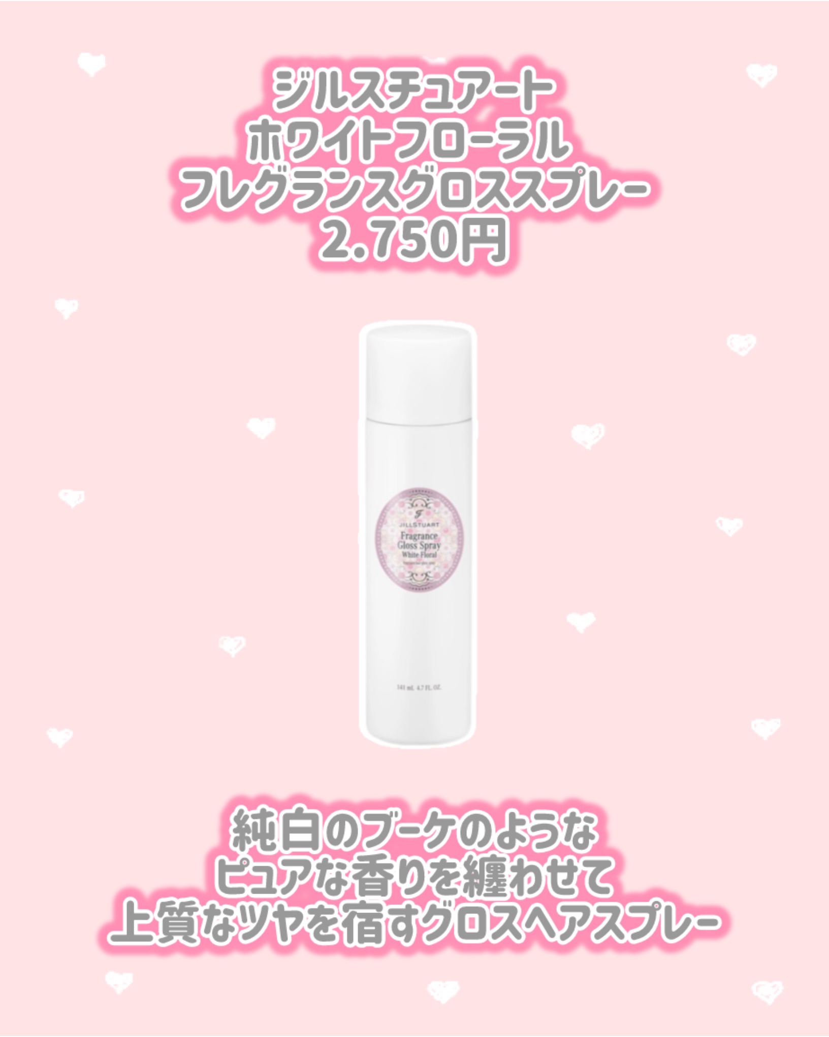 JILL STUART ジルスチュアート ホワイトフローラル フレグランスグロススプレー | 2,750円 |