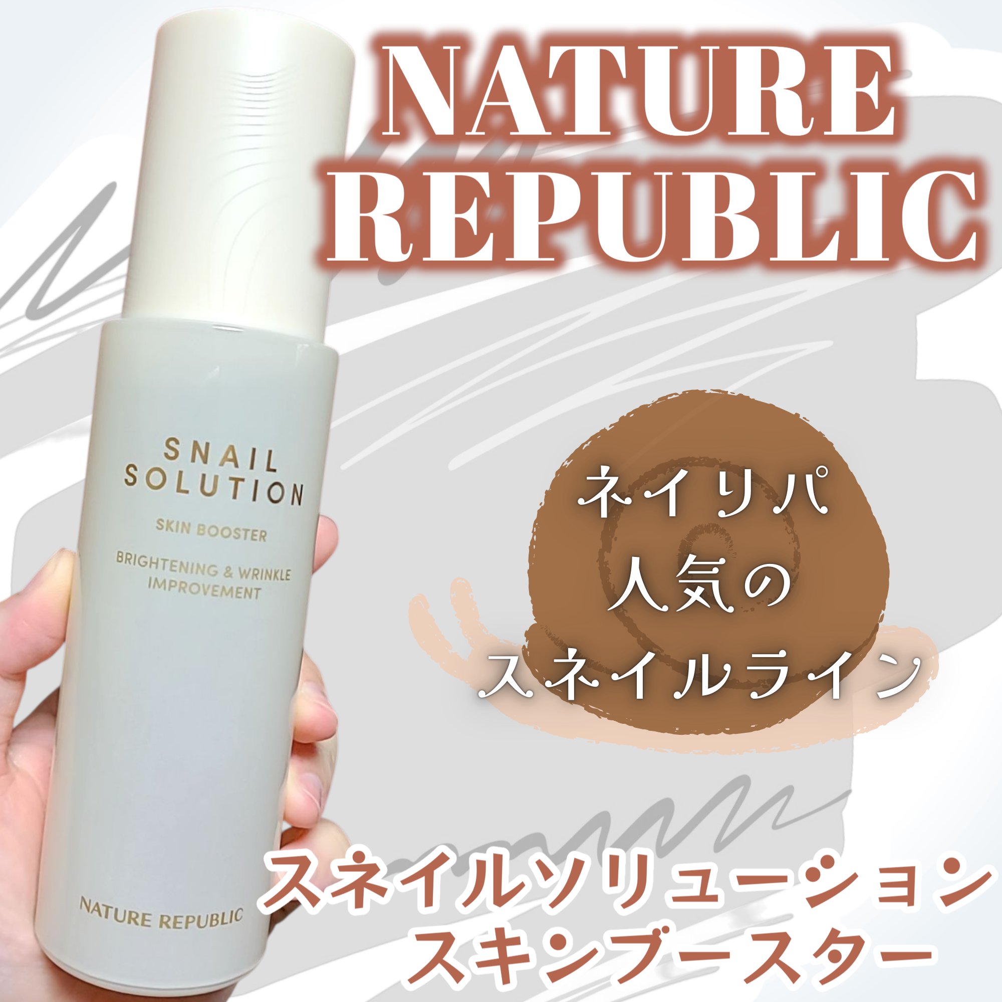𓍯スネイルソリューションスキンブースター⌇NATUREREPUBLIC次のスキンケアの浸透をサポートしてくれるネイリパロングセラーの導入美容液🐌🤍☑︎カタツムリ粘液ろ過物80%☑︎3つのシカ成分☑︎パンテノールびよ〜んと粘度のあるとろみテクス...
