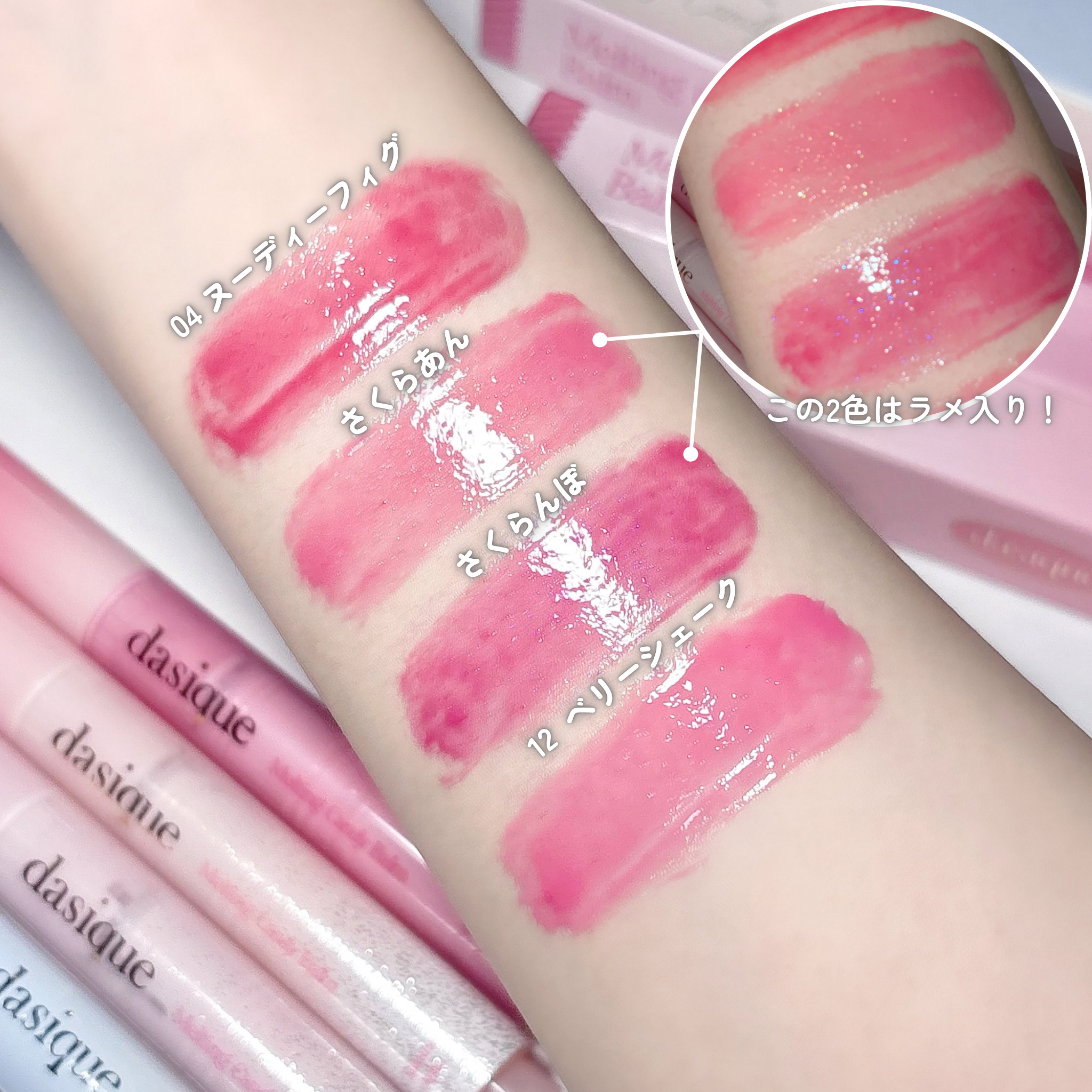 ちゅるちゅるキャンディ光沢リップ❤︎𝒅𝒂𝒔𝒊𝒒𝒖𝒆𝑴𝒆𝒍𝒕𝒊𝒏𝒈𝑪𝒂𝒏𝒅𝒚𝑩𝒂𝒍𝒎6色レポtobibiです!今回はちゅるんと透明感たっぷりの唇になれるdasiqueのメルティングキャンディーバームを6色レビューしたいと思います♡dasi...