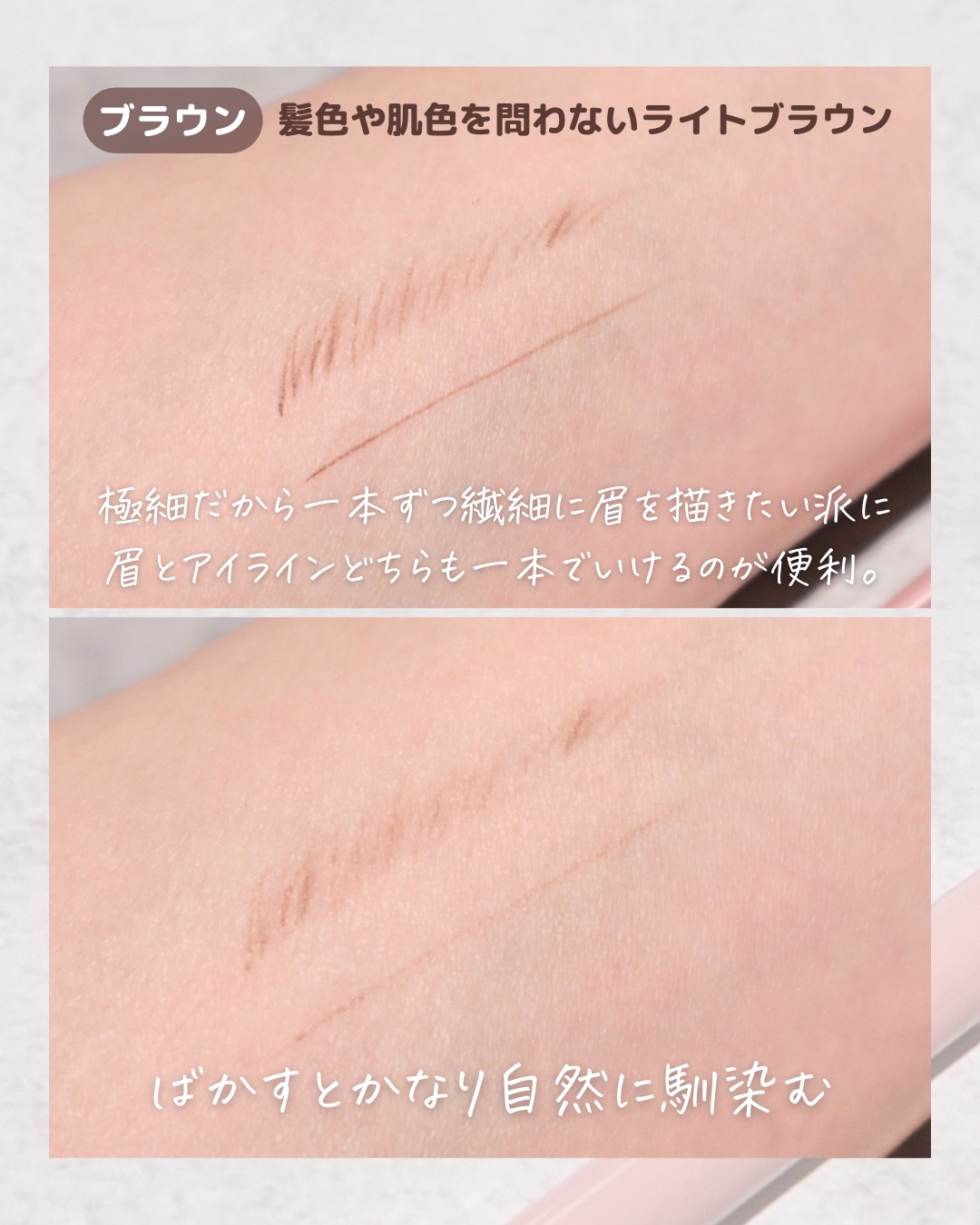 新作が可愛すぎて使いやすくてすごい! アイ&ブロウマルチペンシル 1,210円(税込) 1.0mmの極細芯の眉だけではなく、涙袋の影やアイラインの下描きとしても使えるマルチペンシル! お色もすっごく可愛い明るいピンクブラウン♡ ツヤ感あふれる偏光パール入り♡ ハイライトにもおすすめ! ブラシが収納できるのも良い! ぜひぜひチェックしてみてください!