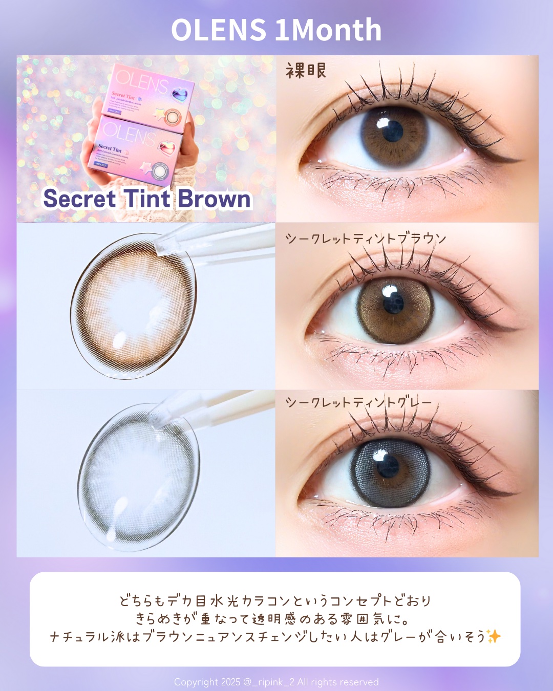 ⋱水光アイ爆誕💎韓国っぽカラコンこれで決まり👏🏻✨⋰新作速報〜👀💡韓国カラコン、OLENSからデカ目水光カラコンが登場!【SecretTint】🫧DIA14.5mm×着色直径13.5mm🫧含水率40%🫧1Month(1箱2枚入り)☑Brown...