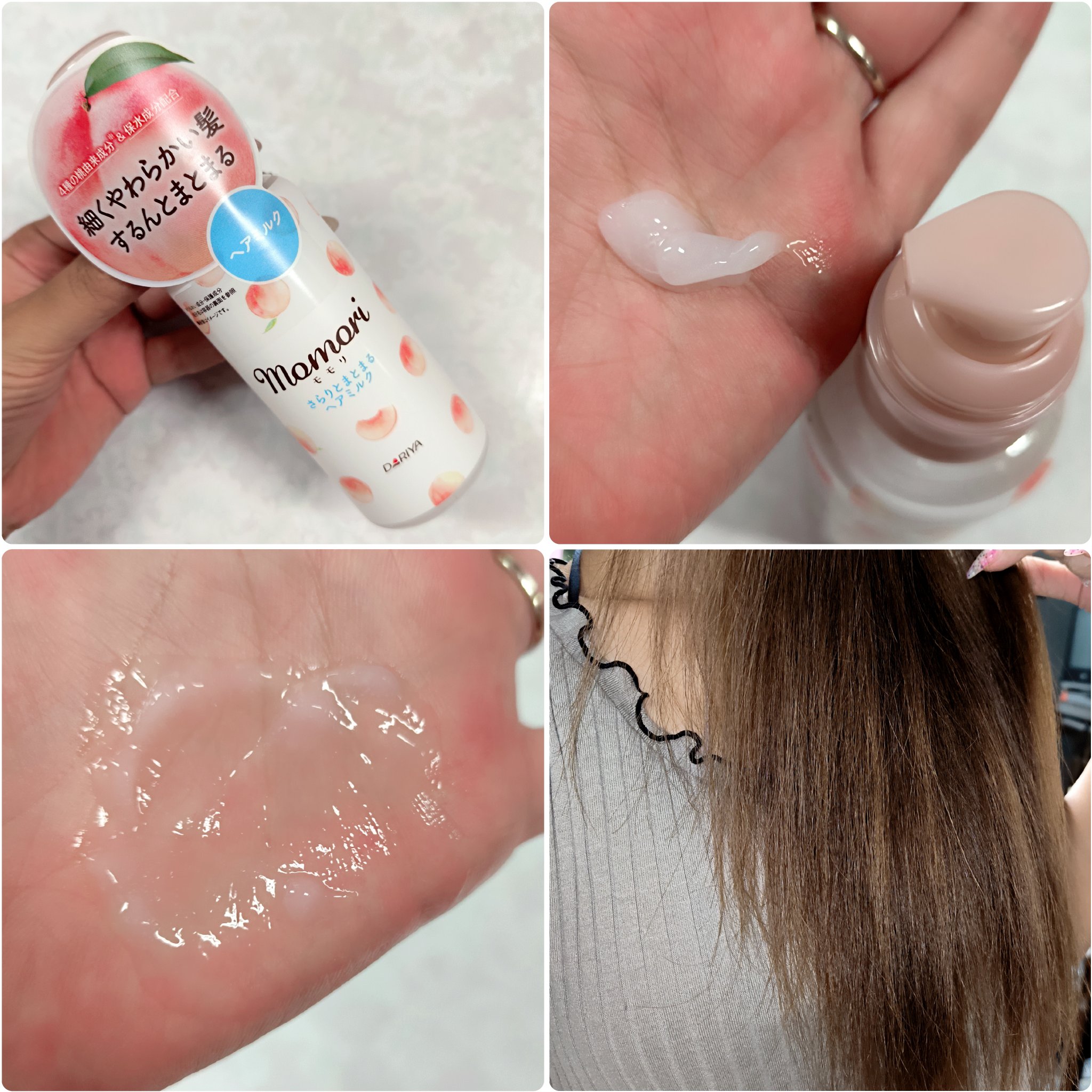 モモリさまからいただきました🩷モモリさらりとまとまるヘアミルク🍑細くやわらかい髪にさらりとまとまるヘアミルク✨️細くやわらかい髪も、絡まらずするんとまとまる●ベタつかず、さらっとした使い心地手に残ったミルクはハンドケアとしてもお使いいただけま...