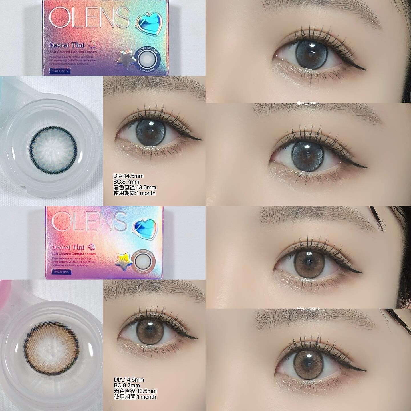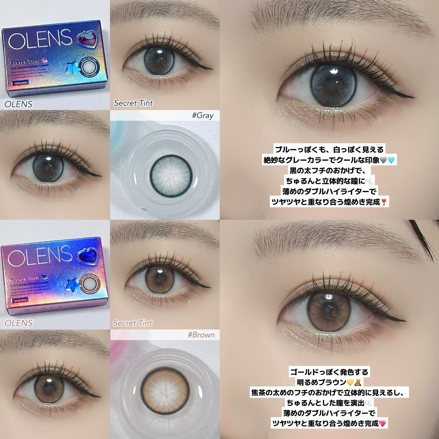 新作デカ目水光カラコン💖💖💖OLENS新作❕明るめのカラーと薄めのダブルハイライターでツヤキラな目元を演出してくれる🎶ྀི🎶ྀི【シークレットティント】・1Month(1箱2枚入り)・DIA14.5mm着色直径13.5mm含水・SecretT...