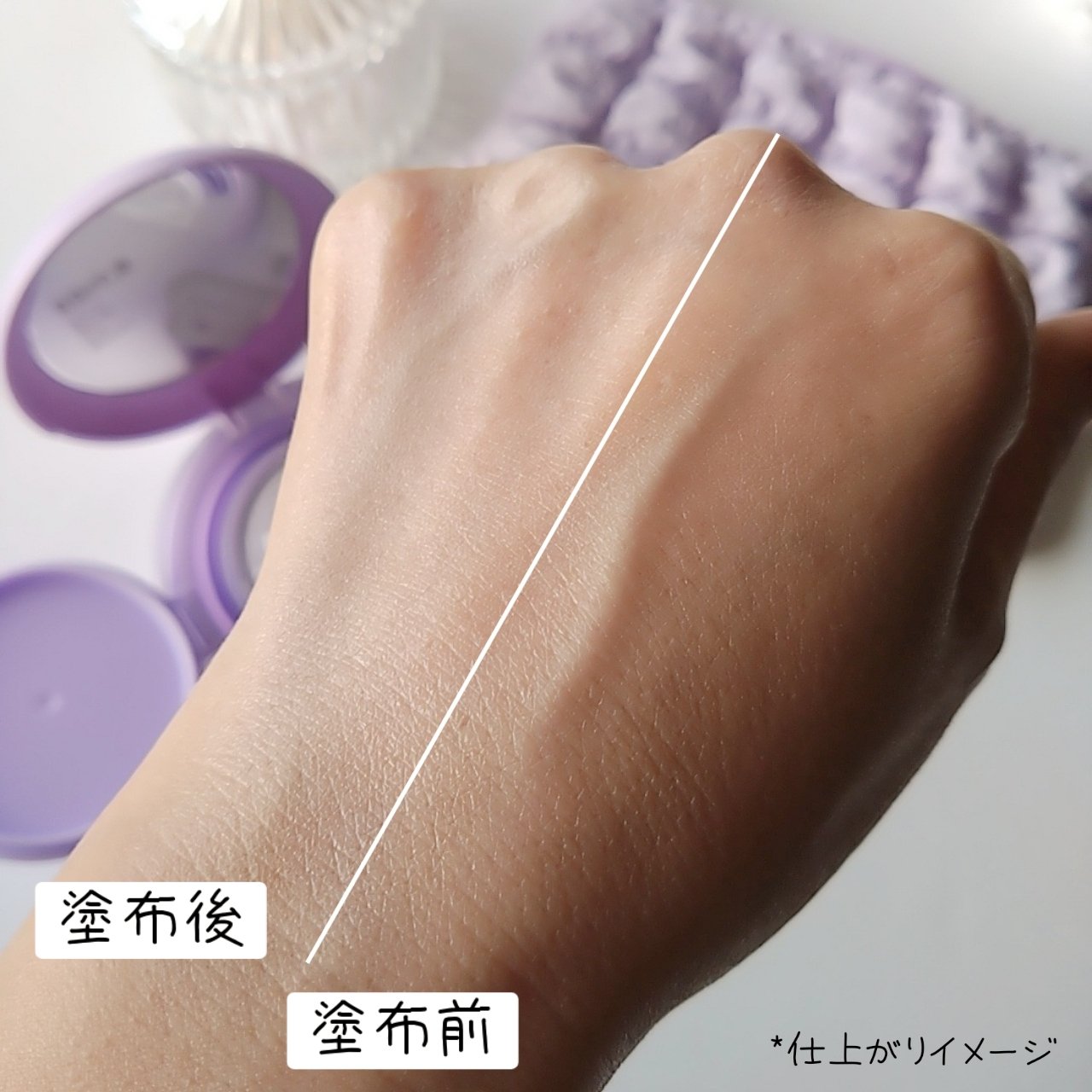 - <ピンク> 精製水、二酸化チタン(CI 77891)、プロパンジオール、ジカプリリルエーテル、アジピン酸ジブチル、イソノナン酸イソノニル、ブチルオクチルサリチル酸、C12-15安息香酸アルキル、ジエチルアミノヒドロキシベンゾイル安息香酸ヘキシル、ナイアシンアミド、ペンチレングリコール、フェニルトリメチコン、DPG、エタノール、1,2-ヘキサンジオール、エチルヘキシルトリアゾン、ジステアリン酸ポリグリセリル-3、ポリヒドロキシステアリック酸、(C14-22)アルコール、水酸化酸化アルミニウム、メチレンビスベンゾトリアゾリルテトラメチルブチルフェノール、セチルリン酸K、ステアリン酸、ステアリン酸ポリグリセリル-10、(アクリロイルジメチルタウリンアンモニウム/VP)コポリマー、ポリアクリレートクロスポリマー-6、香料、(C12-20)アルキルグルコシド、カプリリルグリコール、クロレラブルガリㇲエキス、グルコース、ヒドロキシアセトフェノン、イソドデカン、オクチルドデカノール、合成フルオロフロゴパイト、黄色酸化鉄(CI 77492)、BG、エリスリトール、フルクトオリゴ糖、フルクトース、ジポリヒドロキシステアリン酸ポリグリセリル‐2、キシリトール、デシルグルコシド、クエン酸ステアリン酸グリセリル、イソステアリン酸ポリグリセリル-4、赤色酸化鉄(CI 77491)、ベヘン酸ポリグリセリル-6、アデノシン、トリエトキシカプリリルシラン、トリイソステアリン酸イソプロピルチタン、グリセリン、キサンタンガム、トコフェロール、加水分解ヒアルロン酸、エチルヘキシルグリセリン、ウォーターミントエキス、テルミナリアフェルジナンジアナ果実エキス、クエン酸、トロメタミン、ハス花エキス、ニンファエアアルバ花エキス、ヤマザクラ花エキス、ハイブリッドローズ花エキス、ソルビン酸カリウム、ヒアルロン酸、ヒアルロン酸Na <パープル> 精製水、二酸化チタン(CI 77891)、プロパンジオール、ジカプリリルエーテル、イソノナン酸イソノニル、ブチルオクチルサリチル酸、アジピン酸ジブチル、C12-15安息香酸アルキル、ジエチルアミノヒドロキシベンゾイル安息香酸ヘキシル、ナイアシンアミド、ペンチレングリコール、フェニルトリメチコン、DPG、ベヘニルアルコール、エタノール、1,2-ヘキサンジオール、エチルヘキシルトリアゾン、ジステアリン酸ポリグリセリル-3、(C14-22)アルコール、ポリヒドロキシステアリック酸、(アクリロイルジメチルタウリンアンモニウム/VP)コポリマー、ポリアクリレートクロスポリマー-6、水酸化酸化アルミニウム、メチレンビスベンゾトリアゾリルテトラメチルブチルフェノール、グンジョウ (CI 77007)、セチルリン酸K、ステアリン酸、ステアリン酸ポリグリセリル-10、カプリリルグリコール、ジポリヒドロキシステアリン酸ポリグリセリル‐2、オクチルドデカノール、香料、(C12-20)アルキルグルコシド、クロレラブルガリㇲエキス、グルコース、ヒドロキシアセトフェノン、BG、エリスリトール、フルクトオリゴ糖、フルクトース、キシリトール、デシルグルコシド、イソドデカン、クエン酸ステアリン酸グリセリル、ベヘン酸ポリグリセリル-6、アデノシン、イソステアリン酸ポリグリセリル-4、トリエトキシカプリリルシラン、トリイソステアリン酸イソプロピルチタン、グリセリン、キサンタンガム、ジエチルヘキサン酸ネオペンチルグリコール、トコフェロール、加水分解ヒアルロン酸、エチルヘキシルグリセリン、ウォーターミントエキス、テルミナリアフェルジナンジアナ果実エキス、ルリジサエキス、ヤグルマギク花エキス、カミツレ花/葉エキス、ヒアシンスエキス、ラベンダー花水、オニサルビアエキス、クエン酸、ヒアルロン酸、ヒアルロン酸Na