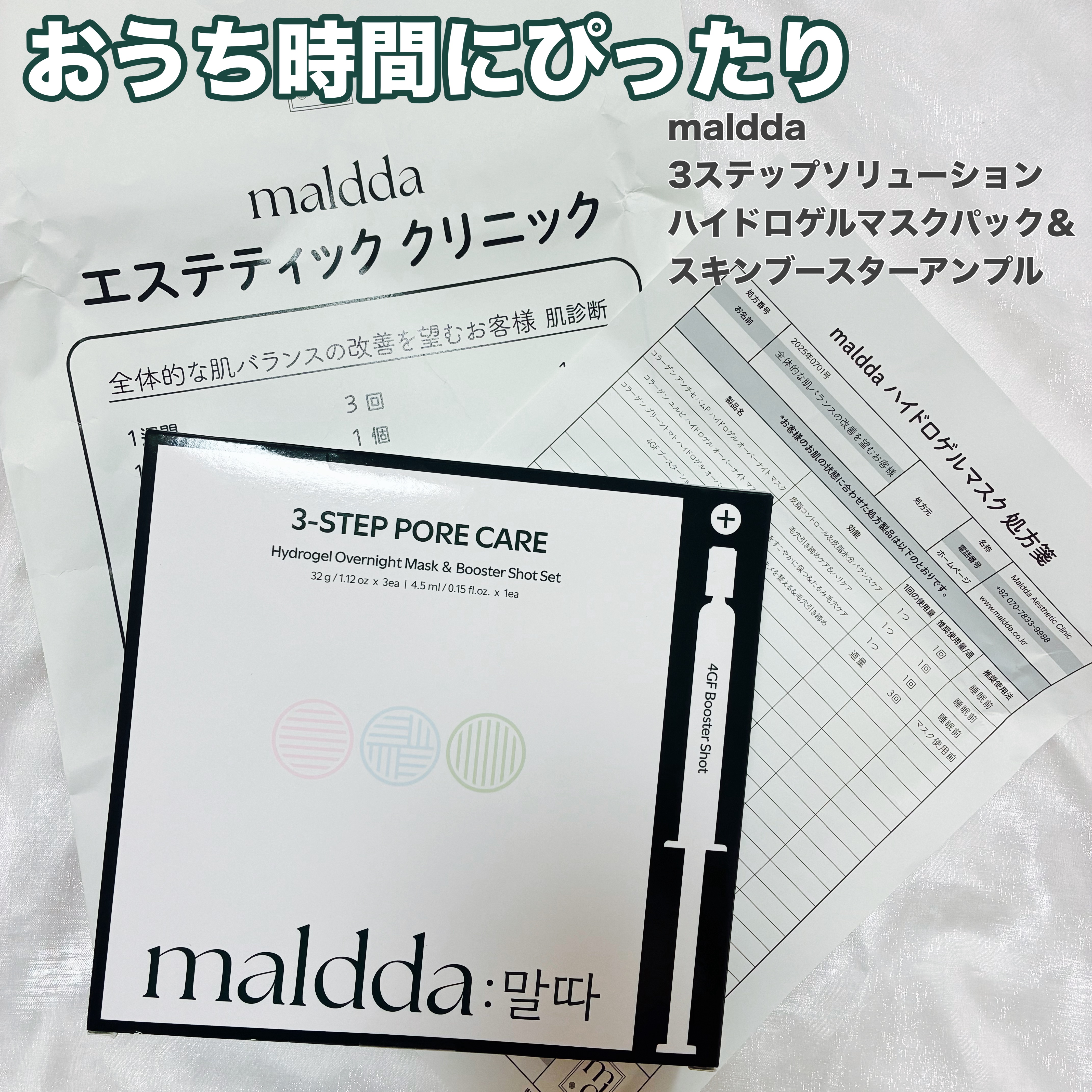 maldda3ステップソリューションハイドロゲルマスクパック&スキンブースターアンプル処方箋パッケージの遊び心にわくわく🤗≈STEP1≈スピキュールを配合した4GFブースターショットアンプルを使用💉シナジー効果↗↗↗≈STEP2≈パックは肌状...