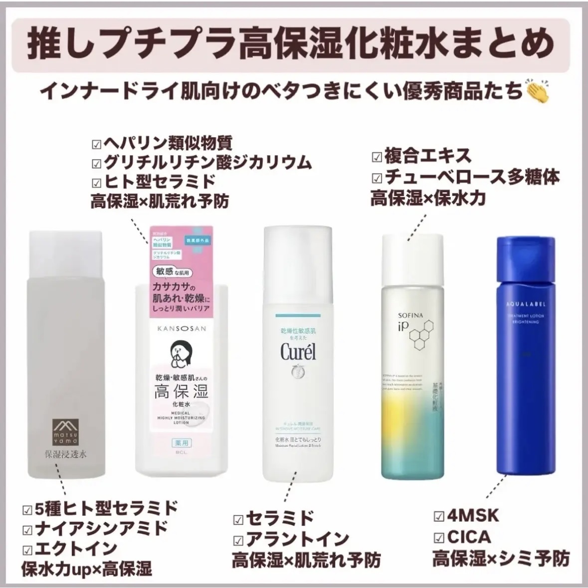 刺激が少なくオールマイティに使いやすい化粧水。【使った商品】キュレル潤浸保湿化粧水Ⅲとてもしっとり【肌質】体調が悪くなると敏感肌に寄る脂性肌。【テクスチャ】しっとり、と銘打ってる割にみずみずしくシャバシャバした化粧水。重すぎず使いやすいです。...
