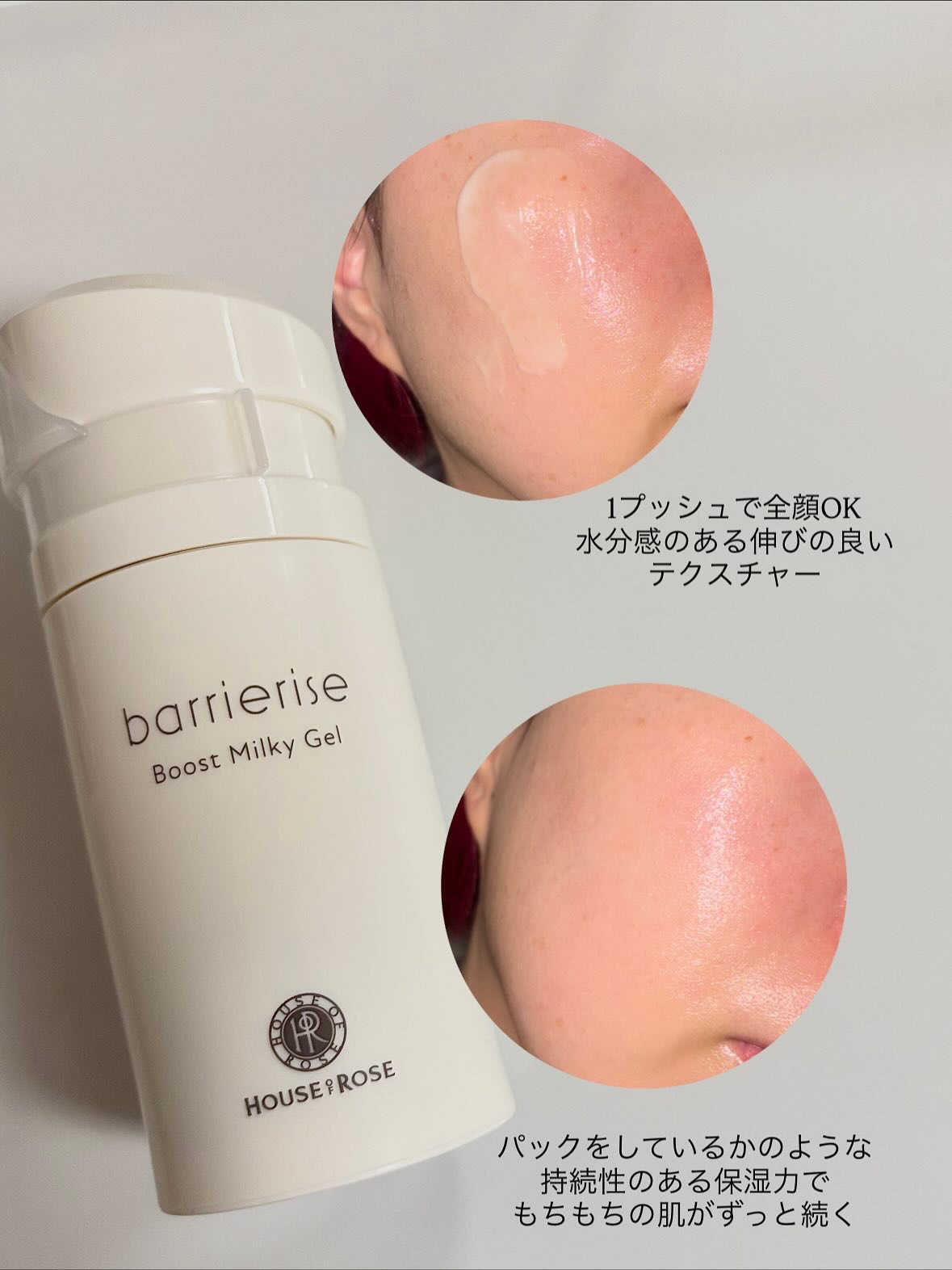 *ハウスオブローゼバリアライズブーストミルキージェル60g*健やかな肌へ導くスキンケアライン“バリアライズ“のジェル状保湿液💠CICA*1、カミツレ花エキス*2、酒粕エキス*3などこだわりの美容成分を包み込んだ3相構造のうるおいバリアカプセル...