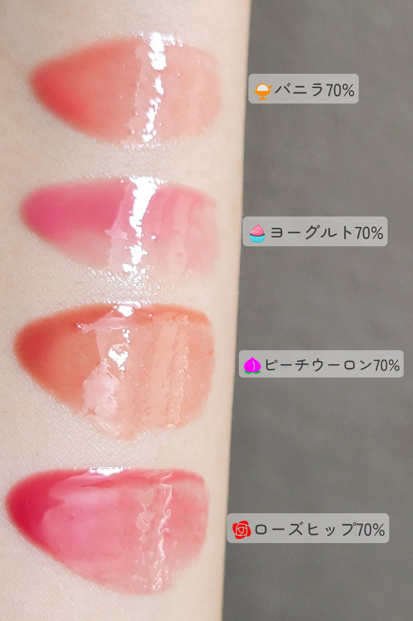 どの色も艶感が綺麗ですね。濃すぎない色合いが普段メイクに合わせやすそうです。