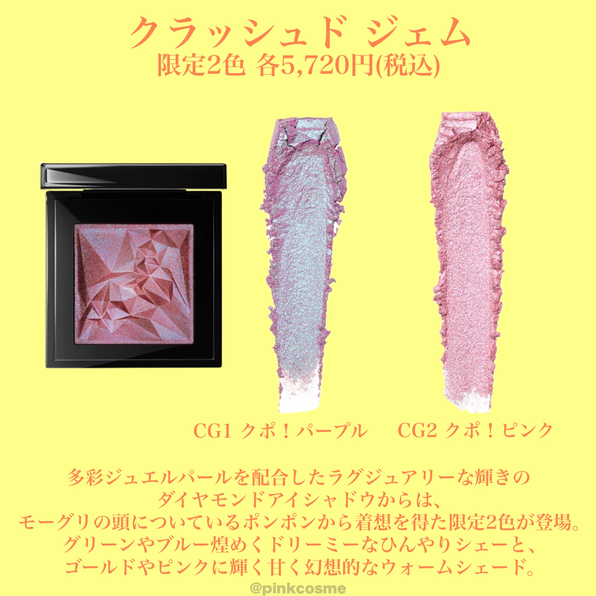 ジューシーピュアアイズのナイトラベンダーが廃盤になってしまうの悲しい😭 上品なパープルで綺麗だったのに。。 ミスティモーヴブラウン気になってたけど、こちらは新商品のミックスアイブロウカラーのC02 ジェラシーパープルが似てそう! 廃盤寂しいけど、3月下旬に新商品発売!4月中旬からは人気アイテムが定番化!と嬉しいお知らせも🥰