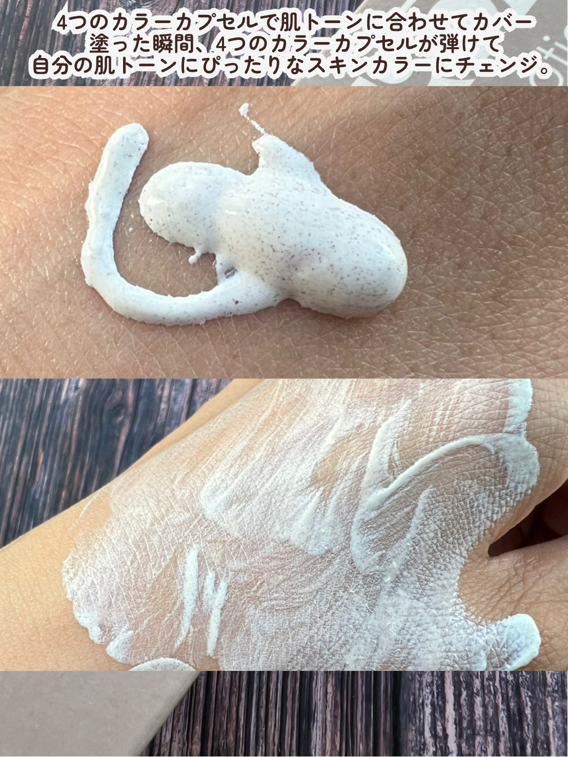 - ファンデーション+日焼け止め+ローションの3つの機能が一度にできる トーンアップ*ローション 浮きにくくナチュラルな仕上がり 8重ヒアルロン酸(保湿)、シカ(ツボクサ)整肌成分、毛穴ケア(保湿)成分含有 ワンカラーで(4色のカプセル配合) 肌に合わせて自然に補正*される トーンアップローション *メイク効果による