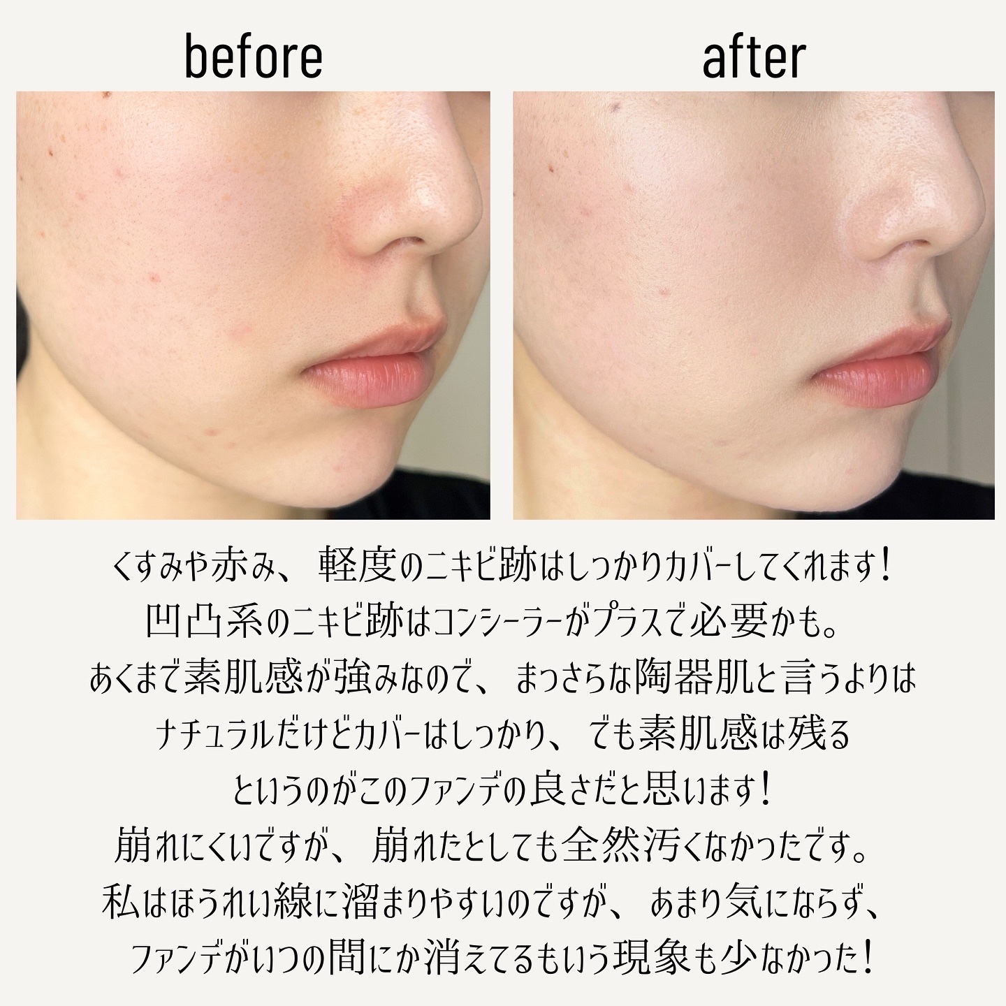 | 肌の表面はさらっと内側はしっとりと セミマットフィット✨ ほどよくツヤ感もある👏 厚塗りになりにくく崩れにくい🫶 | 詳細を見る |