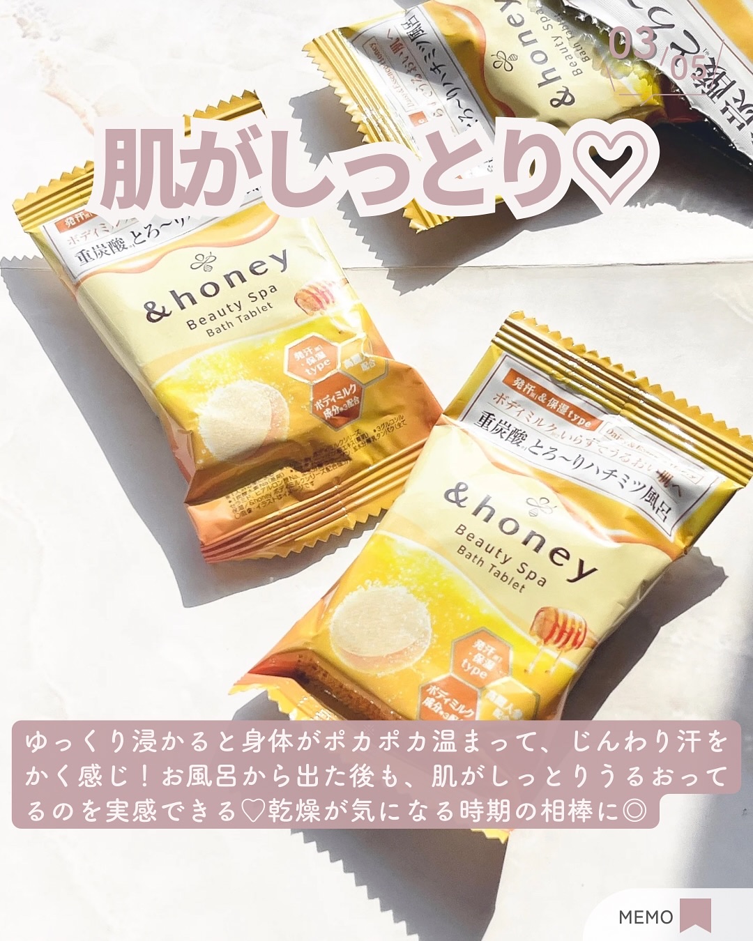 &honeyからバスタブレットが新発売!「ご自愛お風呂セット」が届いた😊&honeyのハチミツ美容🍯で心も身体もうるおい疲労回復✨ゆったり浸かるバスタイムは疲れて帰った夜の自分へのごほうび🤍タブレットは気分に合わせて選べる2種類があるよ◇◇◇...