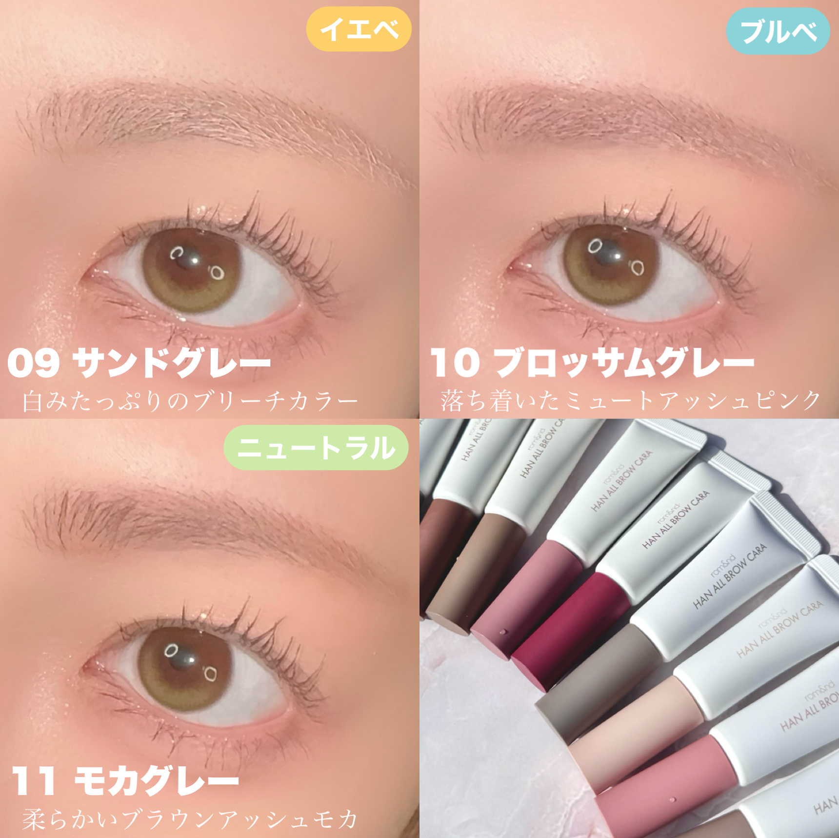 《ハンオールブロウカラ6色比較してみたよ❣️》以前からハンオールブロウカラが好きで結構集まったし、LIPSベスコス2025にも選ばれたということで❣️今回は実際に持ってるカラーを眉毛に直接塗って比較してみました✨️rom&ndハンオールブロウ...