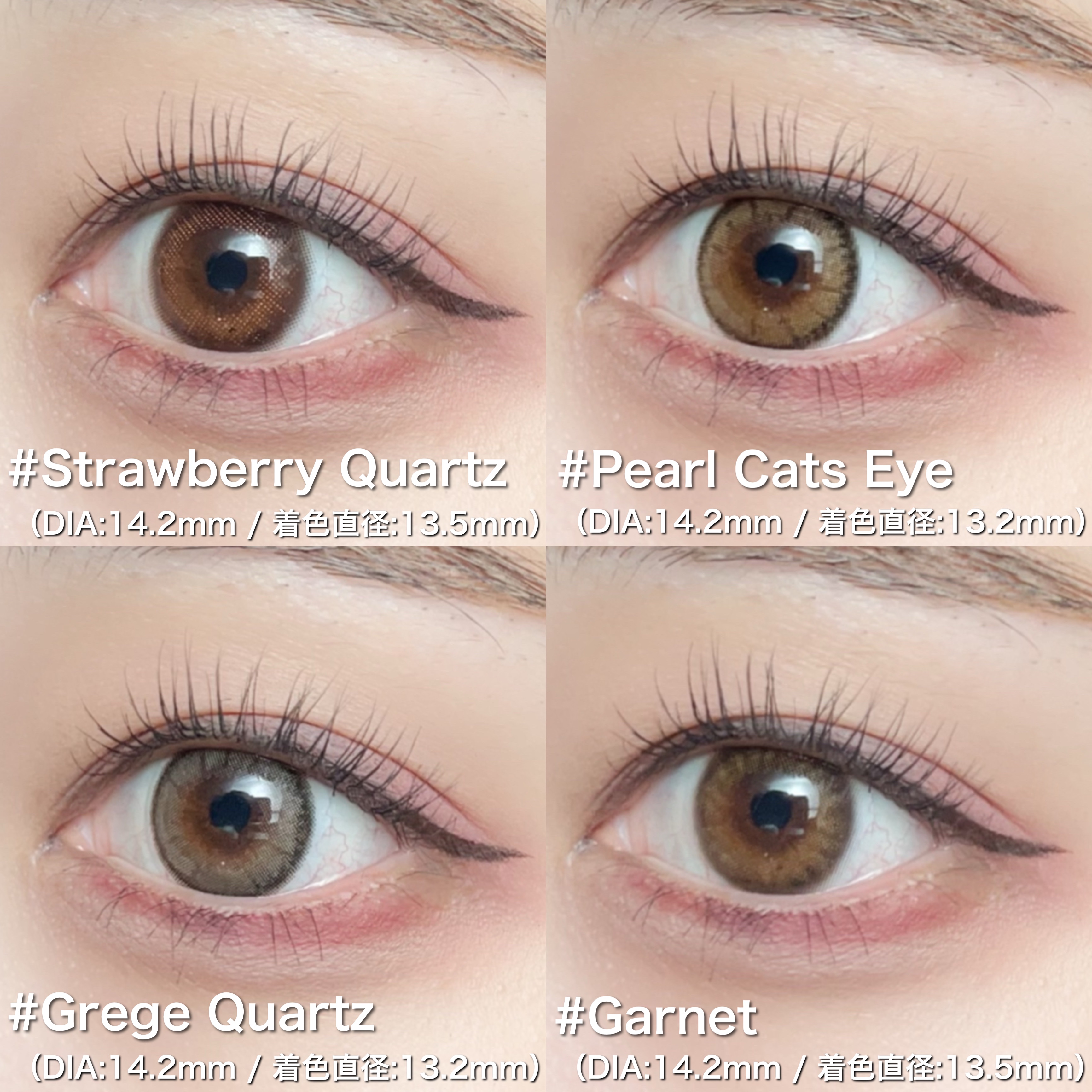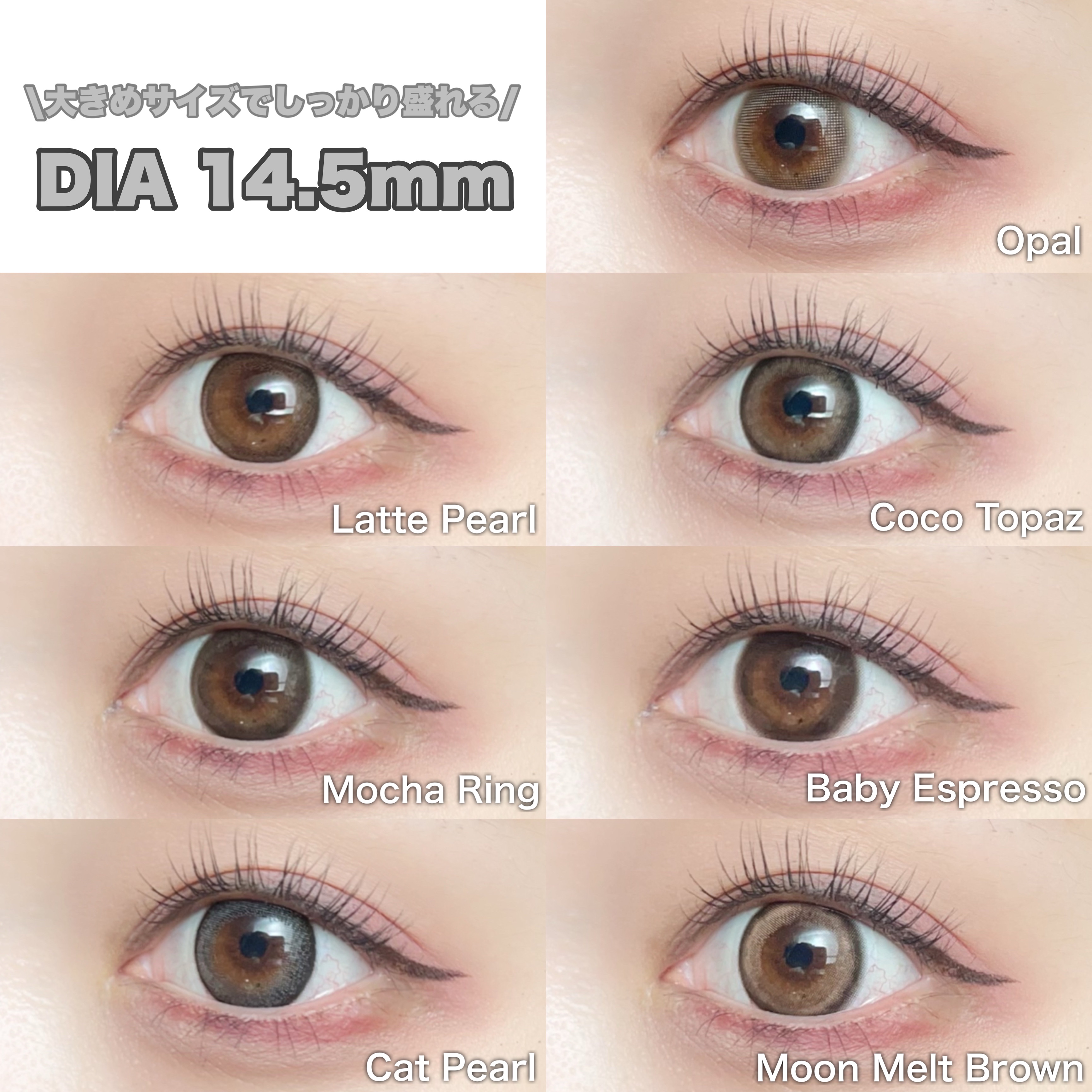 - ※2025年6月以降、商品パッケージ裏面・側面の一部表記を順次変更いたします。尚、これにかかる商品の交換・返品は承っておりません。 ■UVカット 紫外線を99%カットします。 ※UV-A波75%、UV-B波99%カット ■低含水 長時間の装用を考えた、レンズ自体に必要な水分が少ない低含水レンズです。※使用時間には個人差がありますので必ず眼科医の指導に従って下さい。 ■レンズ構造 着色剤がポリマー層によりレンズ内に包埋しています。 ■ 非イオン性レンズ 汚れが付きにくく視界をクリアに保ち、快適さが持続します。※装用感には個人差があります。 ■レンズ形状レンズ形状 フチに丸みをつけより快適な着け心地を目指しました。 Moon Melt Brown(ムーンメルトブラウン) とろける甘さのブラウンカラーに月の光を散りばめた、きらめき水光レンズ。 Cat Pearl(キャットパール) くっきり細フチでまんまるな印象の瞳♡きゅるんと子猫っぽグレーレンズ。 Jelly Quartz(ゼリークォーツ) ぼかし細フチでぷるんと輝くような瞳に、毎日使いたくなる引き算大人盛れレンズ。 カラーコンタクトレンズの不適正使用による眼障害の危険性等などがあります。 ●コンタクトレンズは高度管理医療機器です。不十分な洗浄・消毒など不適切なケアや、長時間・交換期間を超えた装用により、アレルギー性結膜炎、角膜感染症、角膜潰瘍等の重篤な眼障害が発生する危険性があります ●ご使用前に取扱説明書を確認してください 使用上の留意事項 ●眼科医院等を受診してからお求めください ●眼に異常を感じたら直ちにレンズ使用を中止し、お近くの眼科等で診察を受けてください ●医師の指示にしたがってご使用ください ●コンタクトレンズを装用する場合、自覚症状がなくても、眼科医院等での定期検査を受けてください ●レンズに不具合がある場合は使用しないでください