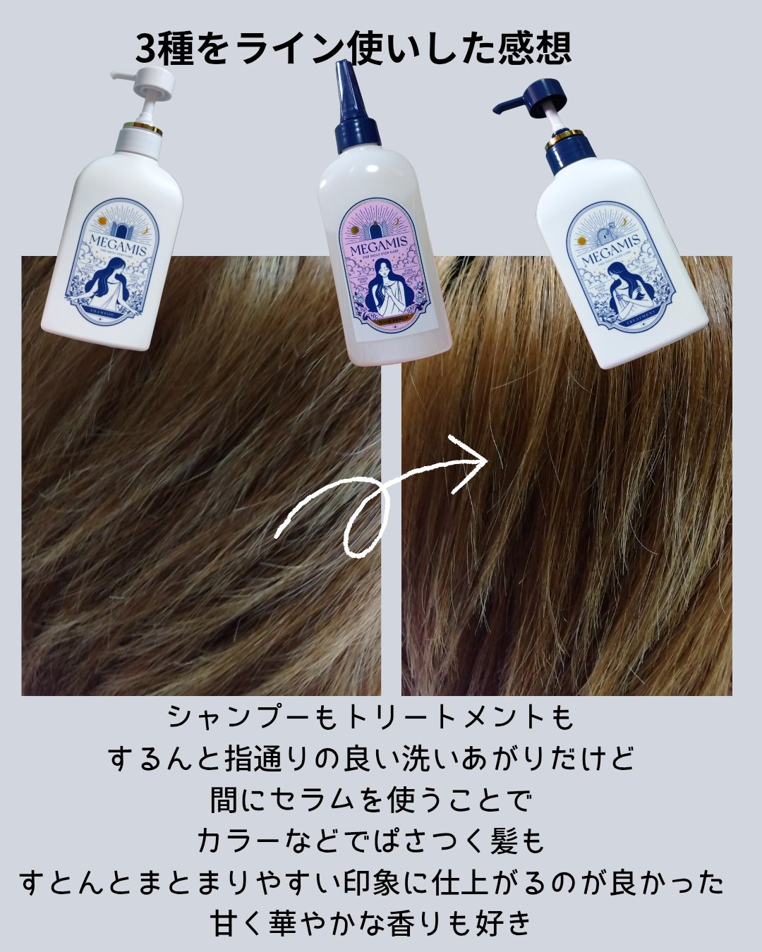 MEGAMISさまからいただきました✼••┈┈••✼••┈┈••✼••┈┈••✼••┈┈••✼MEGAMIS(メガミス)シャンプー トリートメントヘアセラムライオンの新ブランドMEGAMISシャンプーとトリートメントの間に塗るだけのヘアセラム...