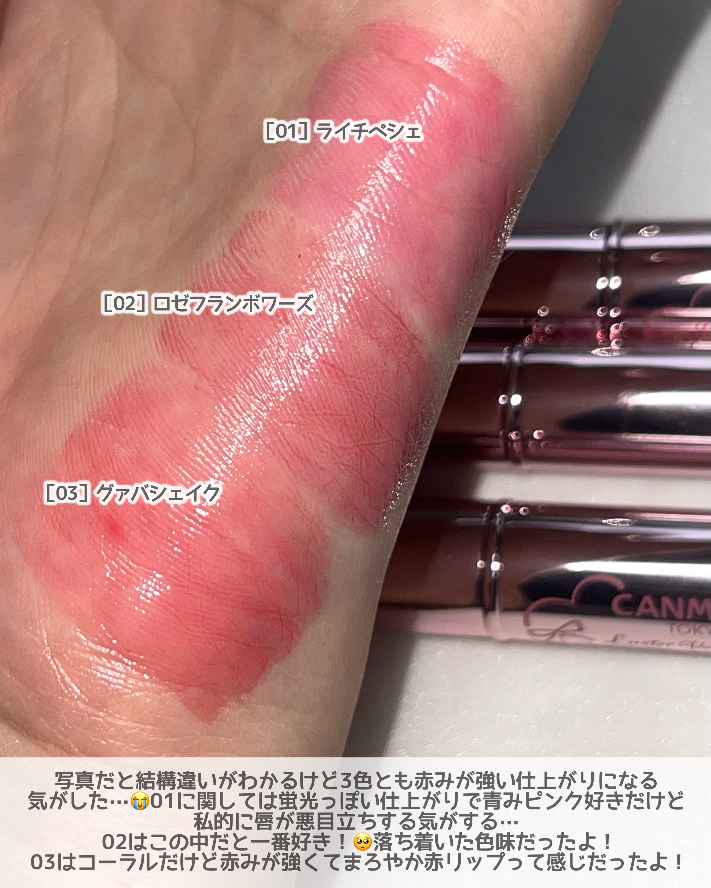 やっぱりキャンメイクで1,000円超えは高いなって思ったのと、カラバリも3色わりと全部似た系統かな?とおもってしまい、柔らか淡めカラーが好きな私には刺さらなかったです💦違う系統のカラーが出たら気になるかもしれないです!
