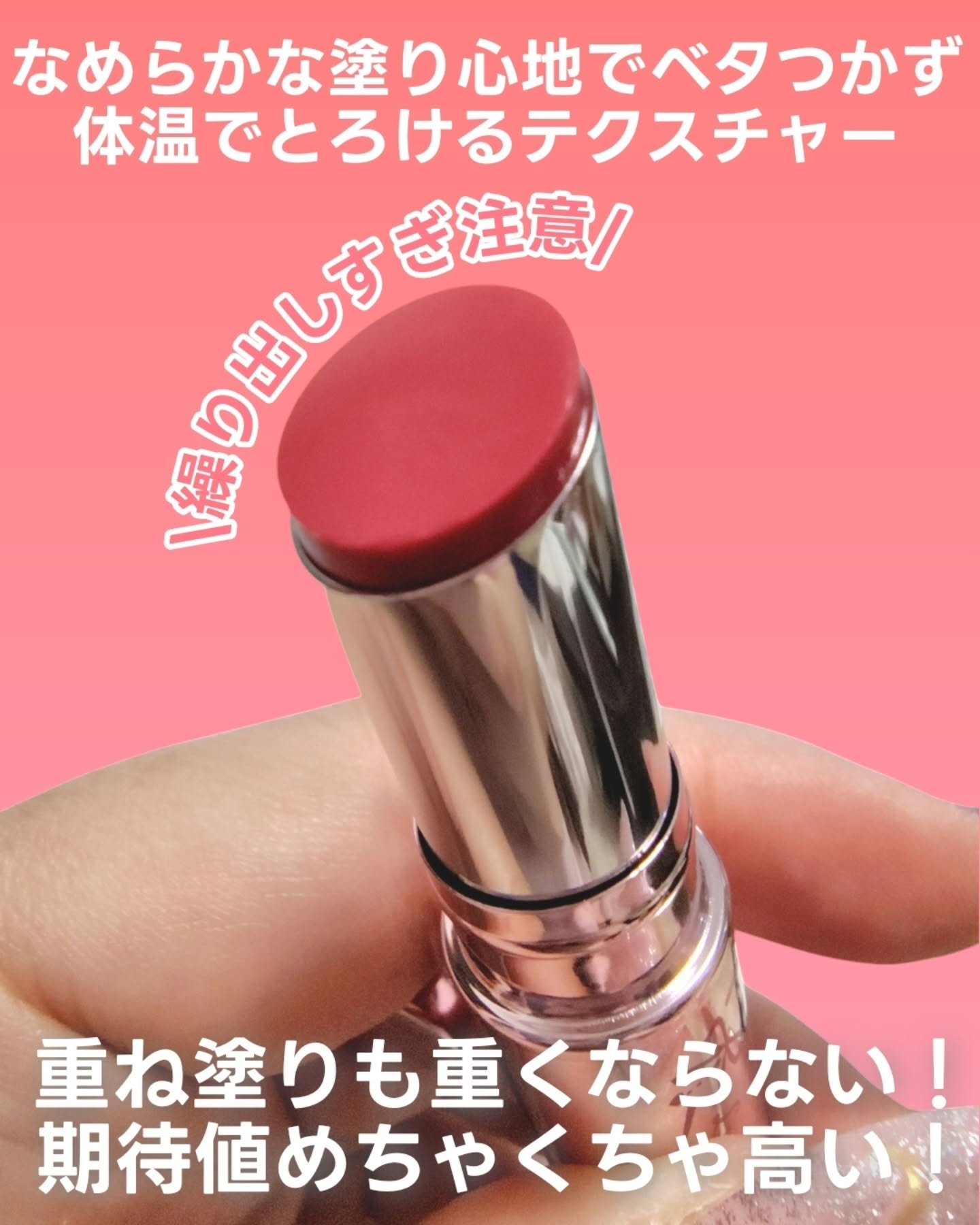 | 口紅・リップスティックランキング第101位 | リップクリームみたいにするする塗れるのに、発色もツヤもきれい | 詳細を見る |