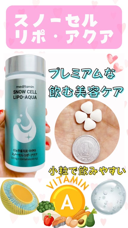 meditaminスノーセルリポ・アクア季節の変わり目にうれしい、毎日の潤い※1&ハリを応援!プレミアムサプリ新登場💛うるおいのある毎日をサポート!贅沢な美容成分配合塗るだけじゃない、飲んで内側からも美容ケア!※1:保湿でキメを整えたことによ...