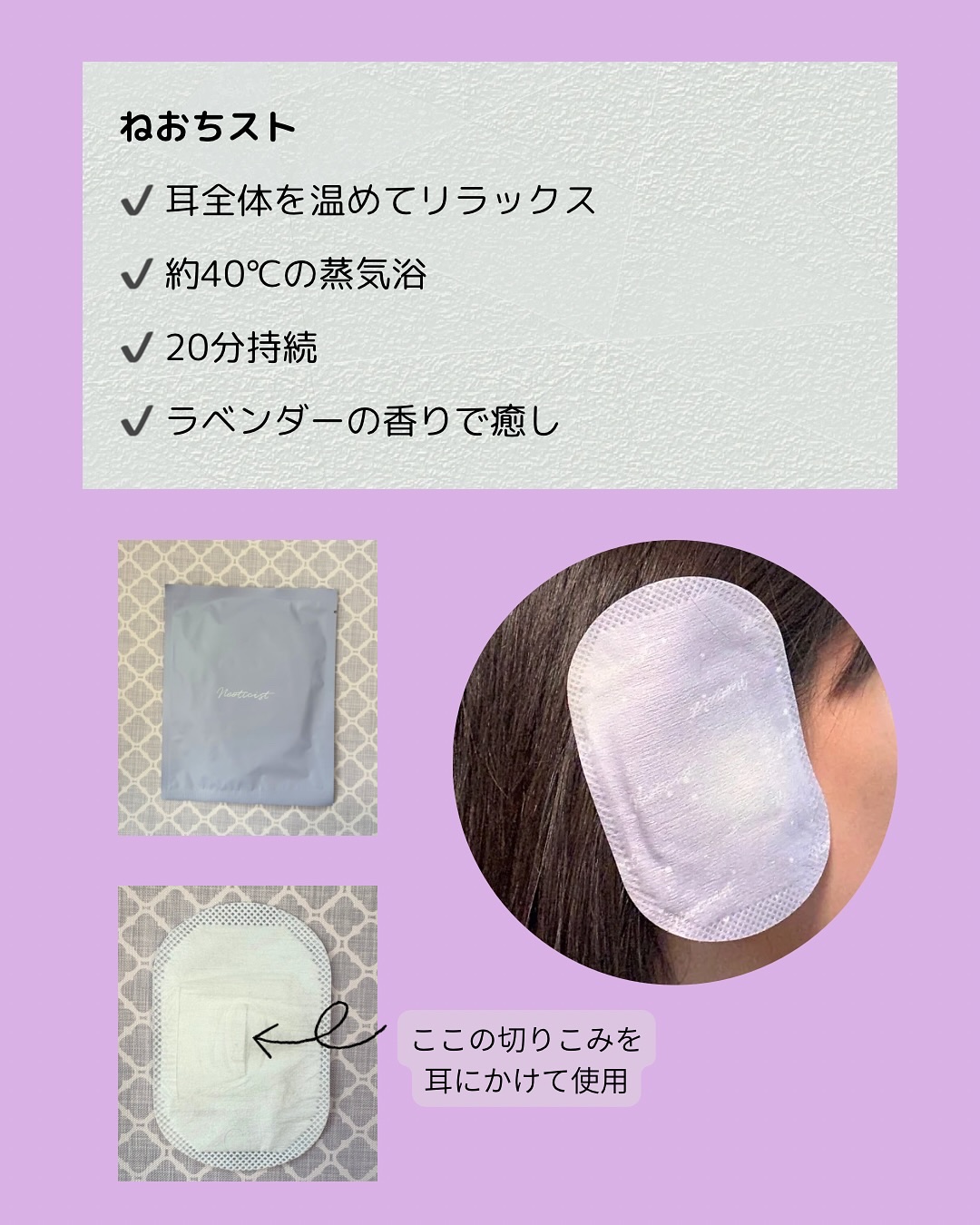 #PR SNSでもじわじわ話題のコジット「ねおちスト」をお試ししてみたよ💜寝付きが悪い日や、なんだか熟睡できないな〜ってときに耳全体をじんわり蒸気で温めてくれる新発想の快眠グッズ✨ 約40℃のやさしい蒸気がふわっと耳を包み込んで、心身ともにリ...
