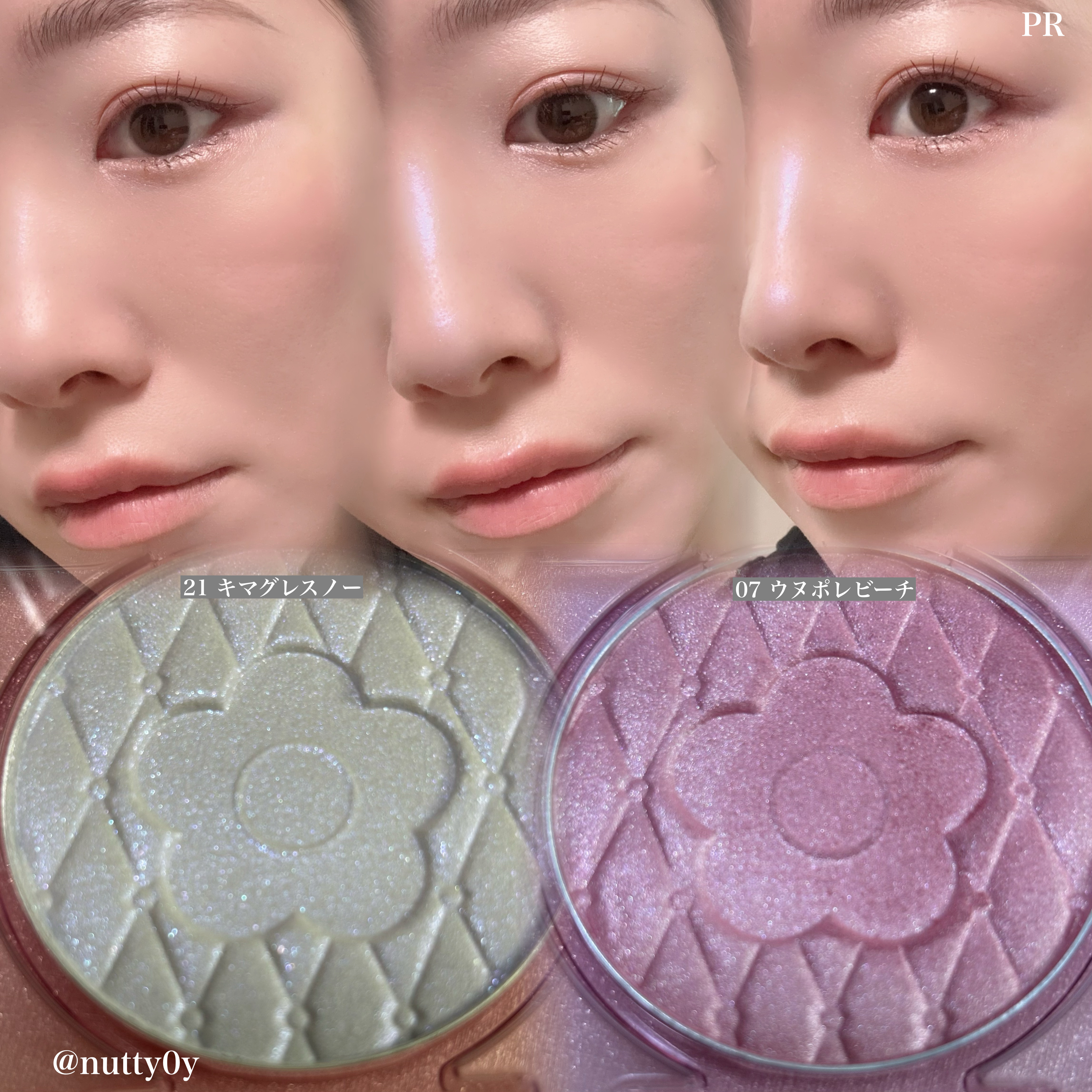 デイジードールのチーク&ハイライトの新色がめちゃくちゃ可愛かった🥺💎⚜️DAISYDOLLbyMARYQUANTデイジードールパウダーブラッシュブルーム07ウヌボレピーチ/21キマグレスノー21キマグレスノーは透明感を与えてくれる繊細な青ラメ...