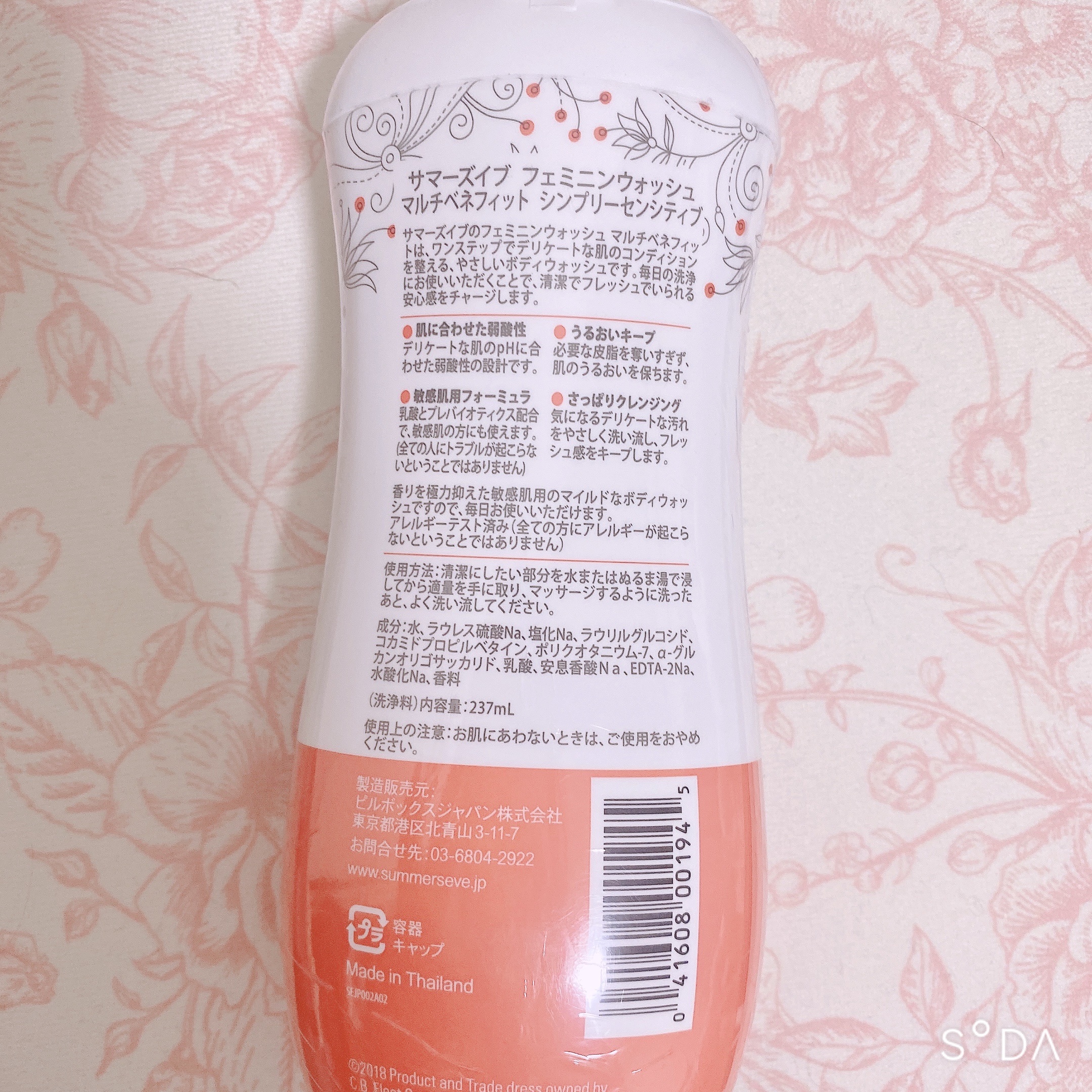 Summer'sEve(サマーズイブ)フェミニンウォッシュマルチベネフィットシンプリーセンシティブ¥1,089ドラッグストアやバラエティショップで購入可能🛍今までボディソープでデリケートゾーンを洗っていたけれど、ふと専用ソープが気になり購入。...