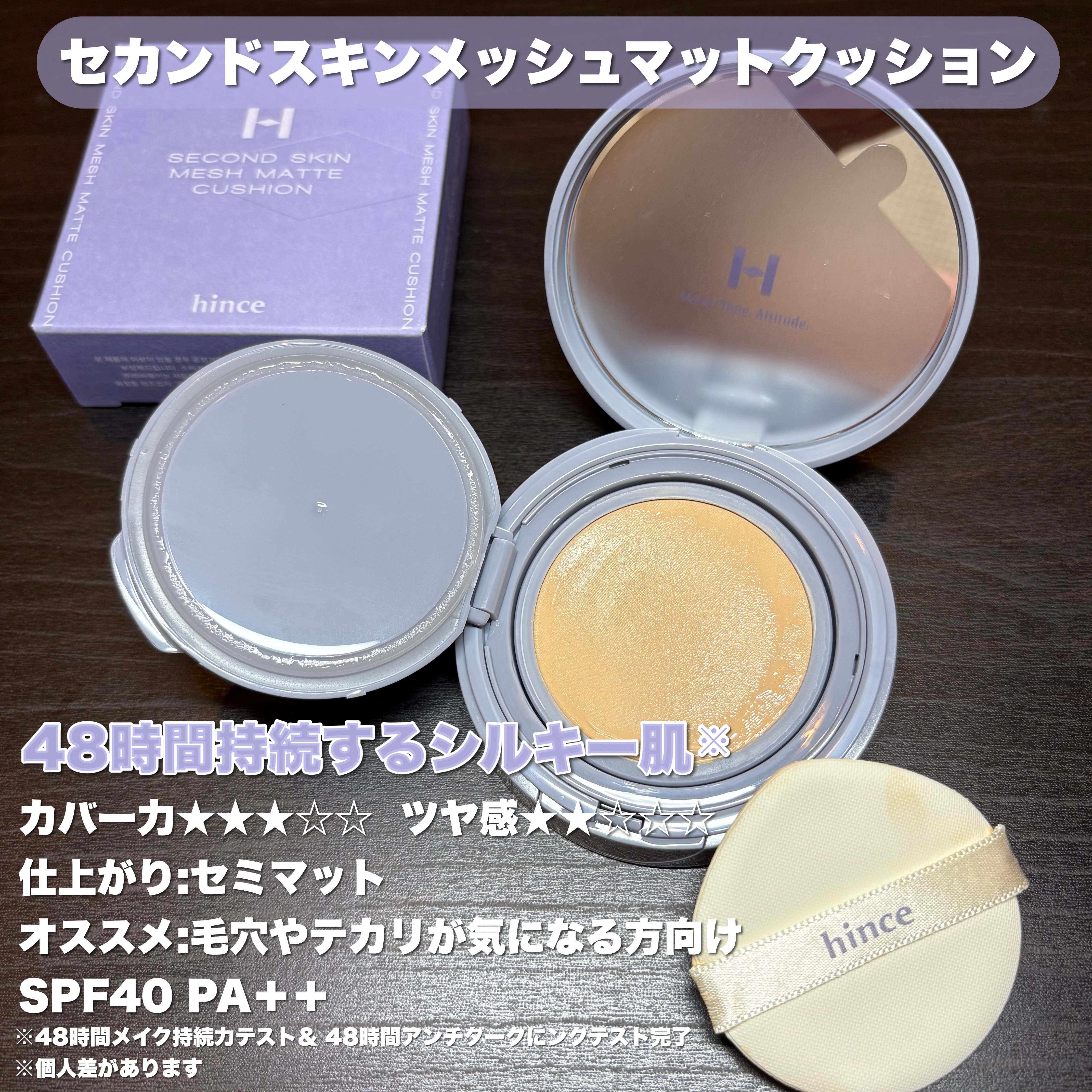 hinceのクッションファンデの違いが気になってたので参考になります!最後の色比較も嬉しいです✨