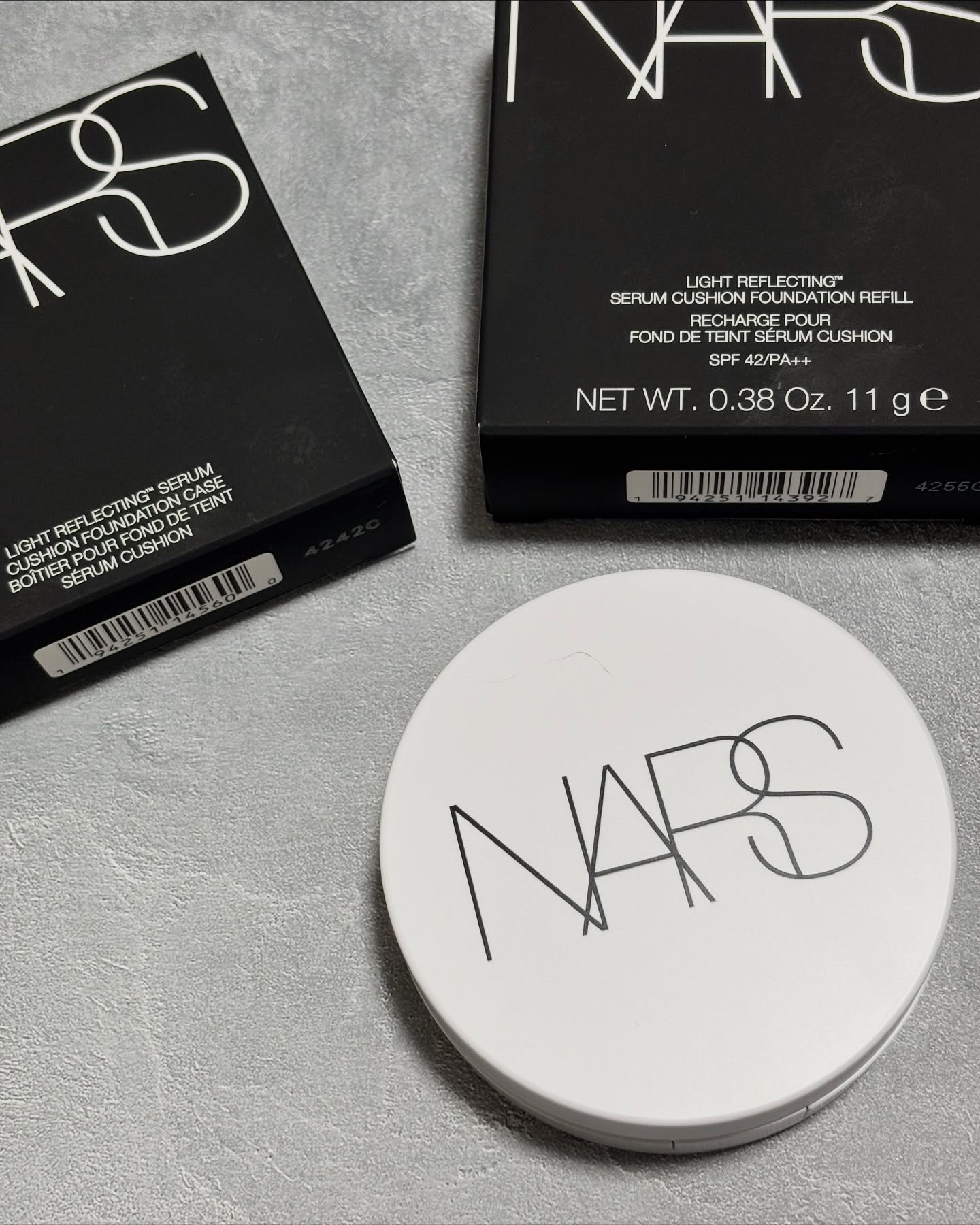 NARSライトリフレクティングセラムクッションファンデーション使ってみました💕SPF42/PA++今回使用したカラーは03790MONTBLANCピンクとイエローのバランスのとれた非常に明るいシェード💛光のカバー力で、透明感のある肌へスキンケ...