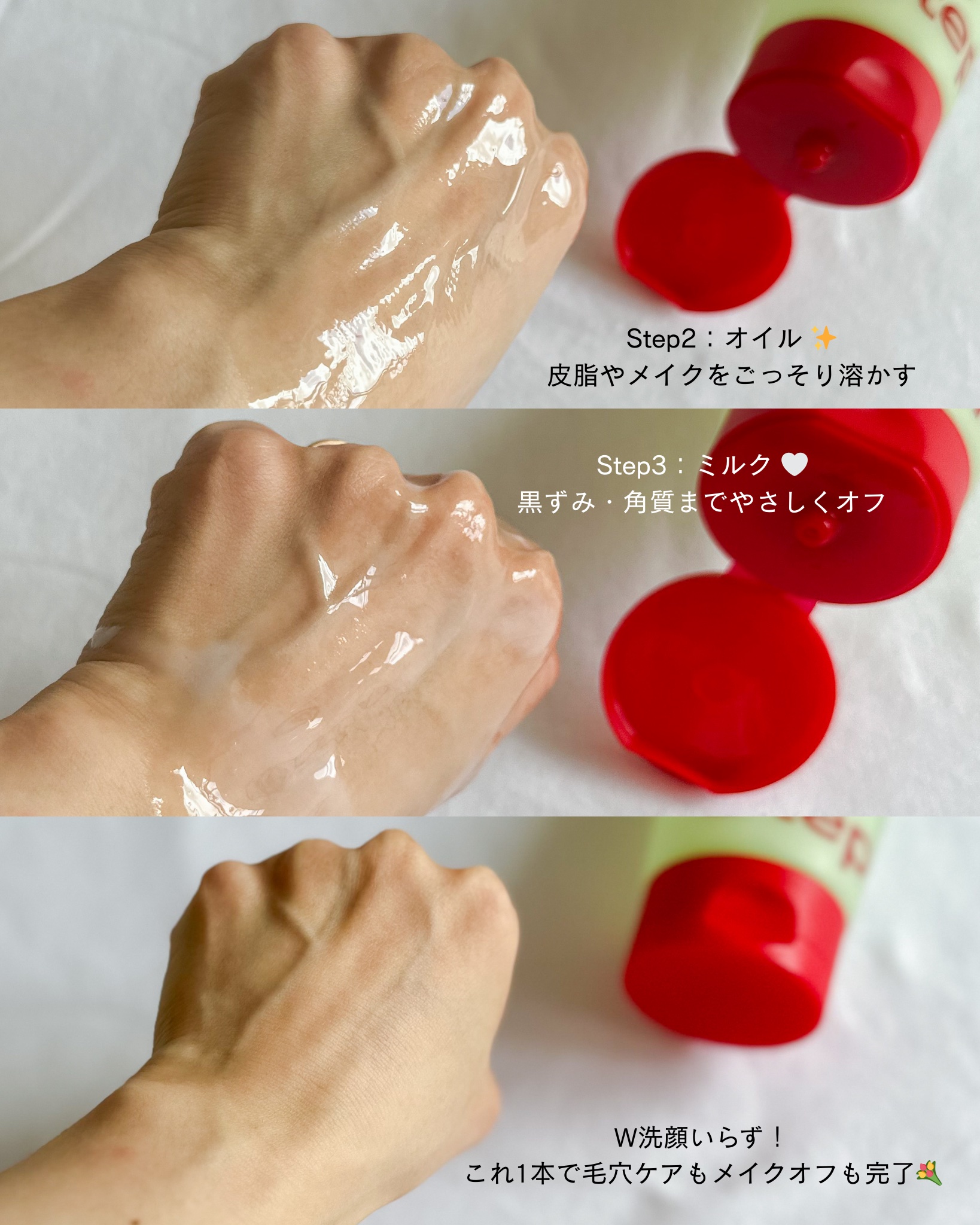 LHA、BHA配合!!ぴたっと吸着クレンジングKindStepティーツリージェルクレンジングオイルジェル→オイル、さらにミルクへの3段変化✨W洗顔いらずのオールインワンクレンジング!もちっとしたゼリーみたいなテクスチャー。毛穴の奥の汚れまで絡...
