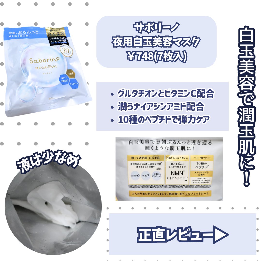 こんにちは!あーたんです!今回紹介するのはサボリーノメガショット夜用白玉美容マスクです!サボリーノメガショット夜用白玉美容マスクだけでOKなのに惹かれて購入LIPPSに書こうと思ったらサボリーノだったことに初めて気づきました🤣けど、納得がしま...