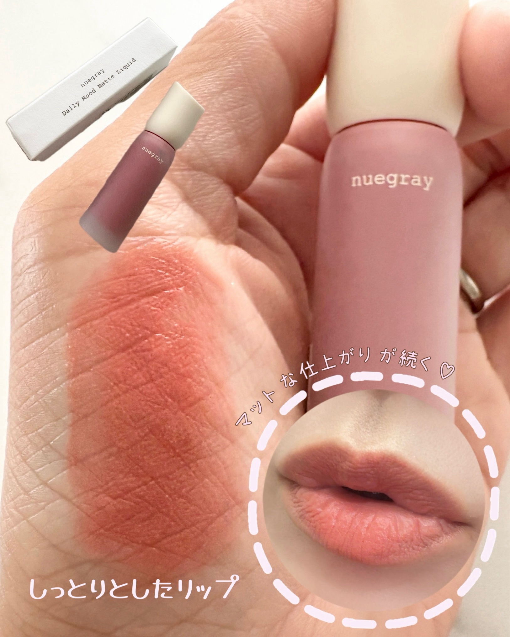 nuegray「デイドリームマットリキッド」06シルエットふんわりスフレのようなマットティント💖毎日の生活で使いやすいデイリーエッセンシャルカラー。マットリップだけどクリーミーで乾燥しにくい密着ティントで縦じわが目立ったりもしない!軽くて密度...
