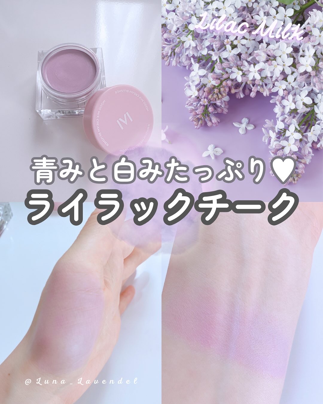 これ、アイベースとしてはもちろんチークベース使いが至高👑 色白の人のまぶたに透けるような透明な紫陽花色(白みがほぼ無く、花びらの抽出液のような色)×みずみずしいのに伸ばすと無重力になるテクスチャーが絶妙。 青みカラーも 青みじゃないカラーも そのままばっちり発色。