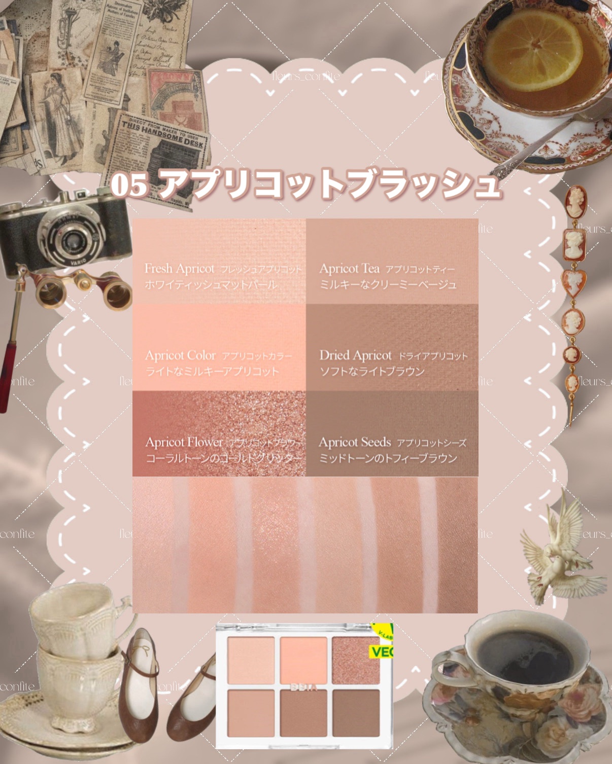 - 感性と実用の間、みんなの好みを集めた6色アイパレット。 バランスを崩しにくい密着力と維持力を追求したテクスチャで、粉飛びをおさえたソフトなタッチ感。基本に忠実したウェアラブルなアイパレットでどんなカラーの組み合わせでも、綺麗に仕上がるカラー構成。