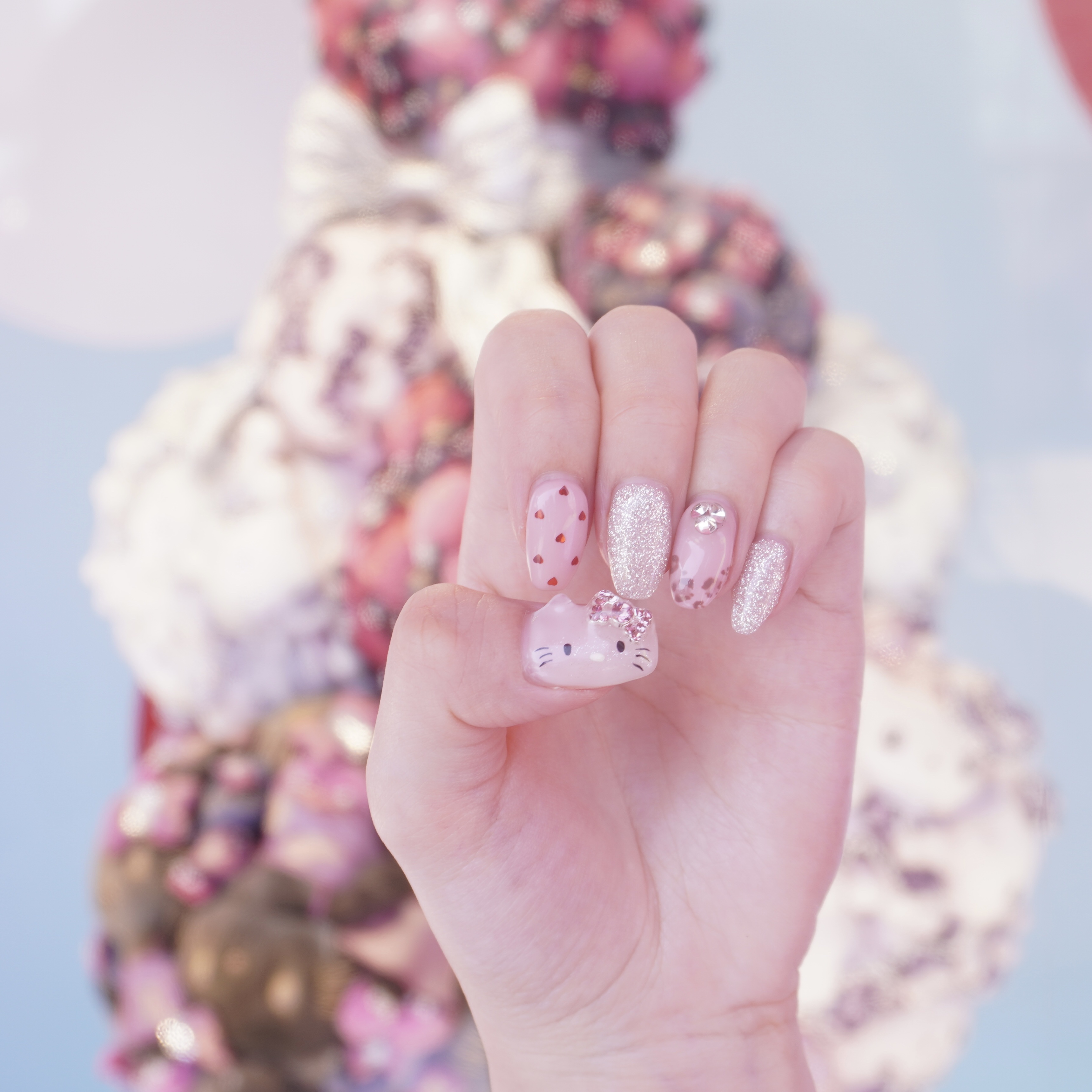 etudeの日焼けキティ可愛すぎるからさ…🥺❤️セリアの商品で数百円ジェルネイル💅🎀私は白と黒をベースとして塗った後手持ちのクリアラメ的なのを重ねたけどラメ無しでも十分可愛いよ૮₍̥⎽̫⎽̥₎ა!!(ラメ重ねる事で色むらとか隠せる利点あり❤️...