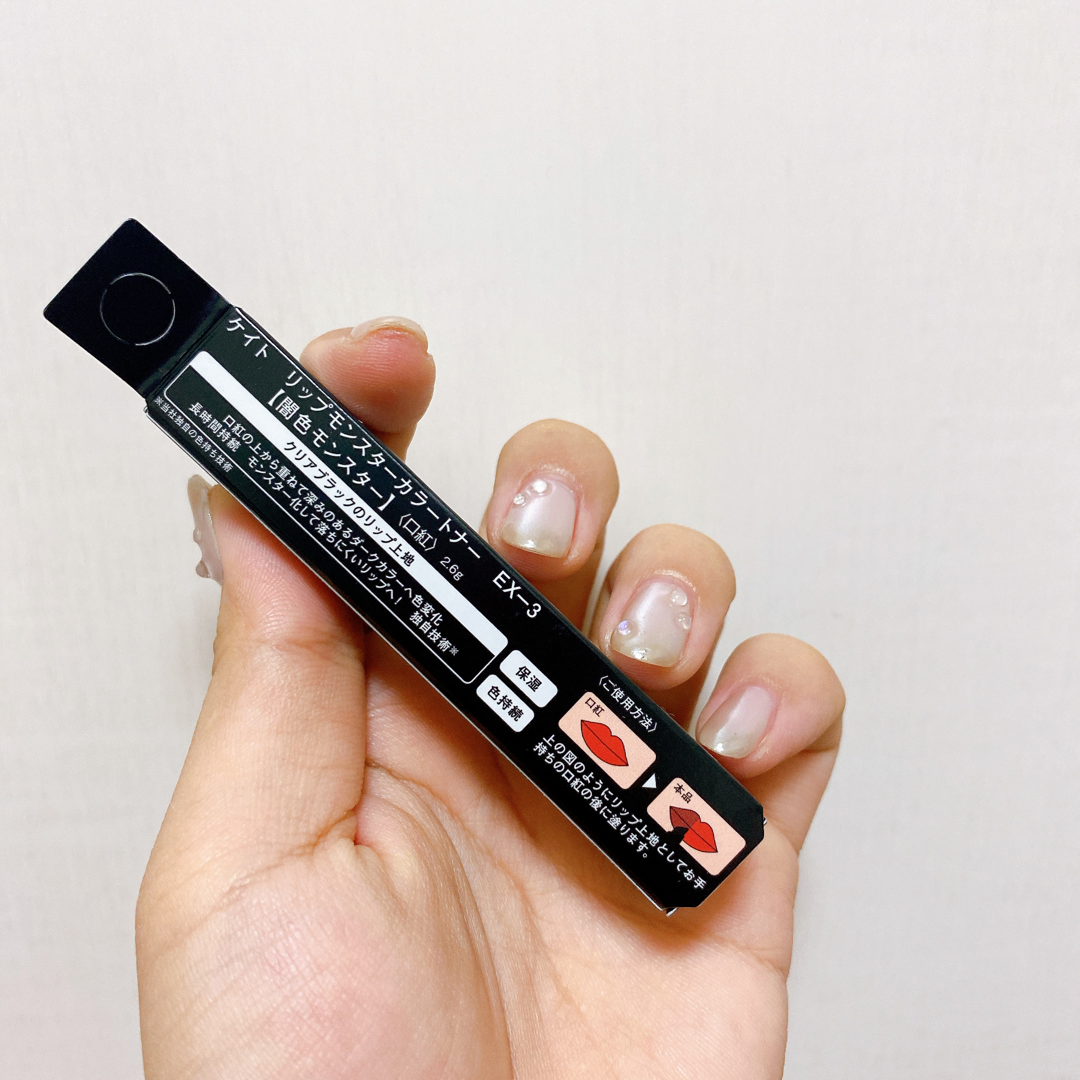 - 【数量限定発売】 口紅の上から重ねて色変化 長時間色持続する闇色モンスター。 当社独自の色持ち技術で、重ねるとモンスター化して落ちにくいリップへ! ■EX-1 苔色モンスター ライトグリーンのリップ上地で、ミルキーなくすみカラーへチェンジ。 ■EX-2 鉄色モンスター ライトグレーのリップ上地で、ダークなスモーキーカラーへチェンジ。 ■EX-3 闇色モンスター クリアブラックのリップ上地で、ダークな深みカラーへチェンジ。