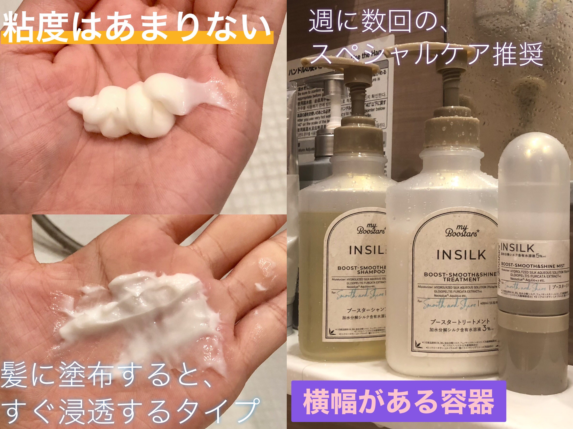 @cosmeプレゼントキャンペーンでいただきましたマイブースターズスムース&シャインインシルクシリーズ・シルクブースターシャンプー・シルクブースターミスト・シルクブースタートリートメント早速使ってみましたキューティクルを緩めて髪の内部へ水にも...