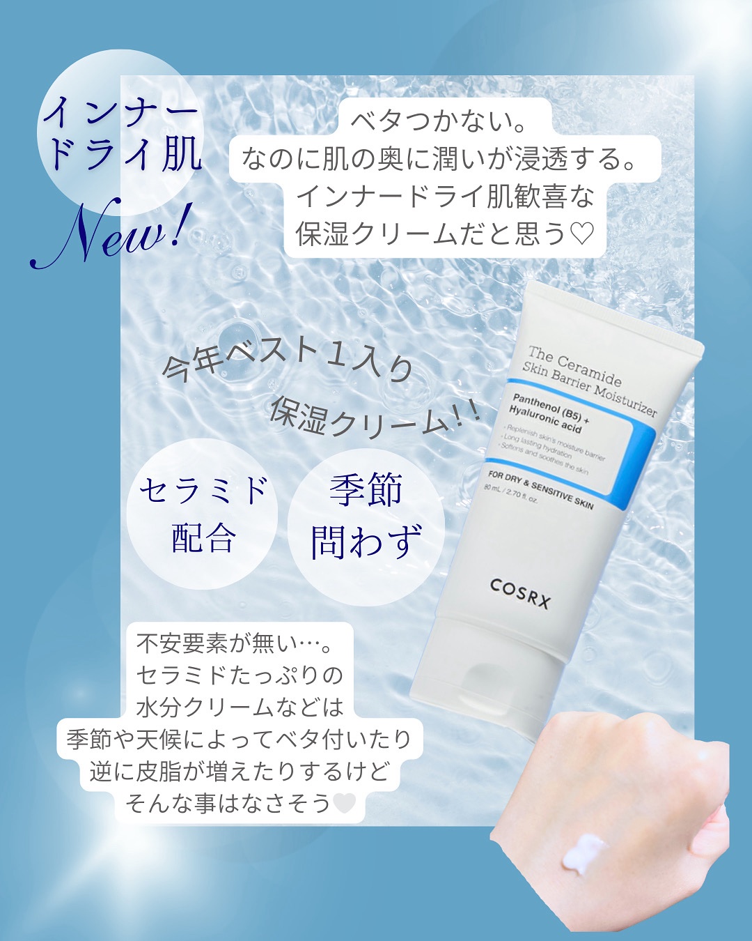【#PR】COSRXRXザ・セラミド肌バリア保湿クリーム肌のバリア機能の維持を構成するセラミド・コレステロール・脂肪酸配合でより健康的で保湿感あふれる肌を実現🩵✨他にも、ヒアルロン酸やスクアラン、アラントインなどの保湿成分も配合◎また、パンテ...