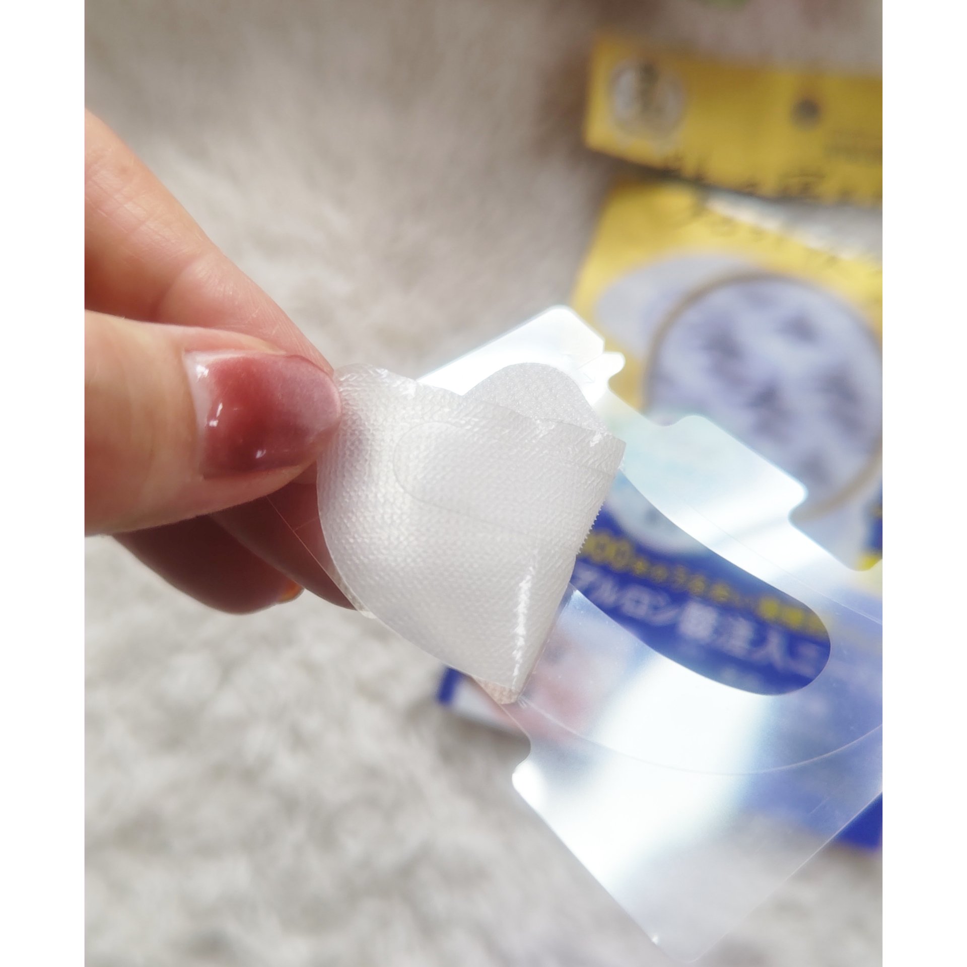 パッケージの底に溜まるほどヒタヒタたっぷりの美容液! シートは厚みがあり、ふわふわ柔らか。とろみのある美容液をしっかりと含んでいます◎ ピタッと肌にフィットして、しっとりした使い心地。 ほんのりフローラル系のいい香りもあって心地いい~✨