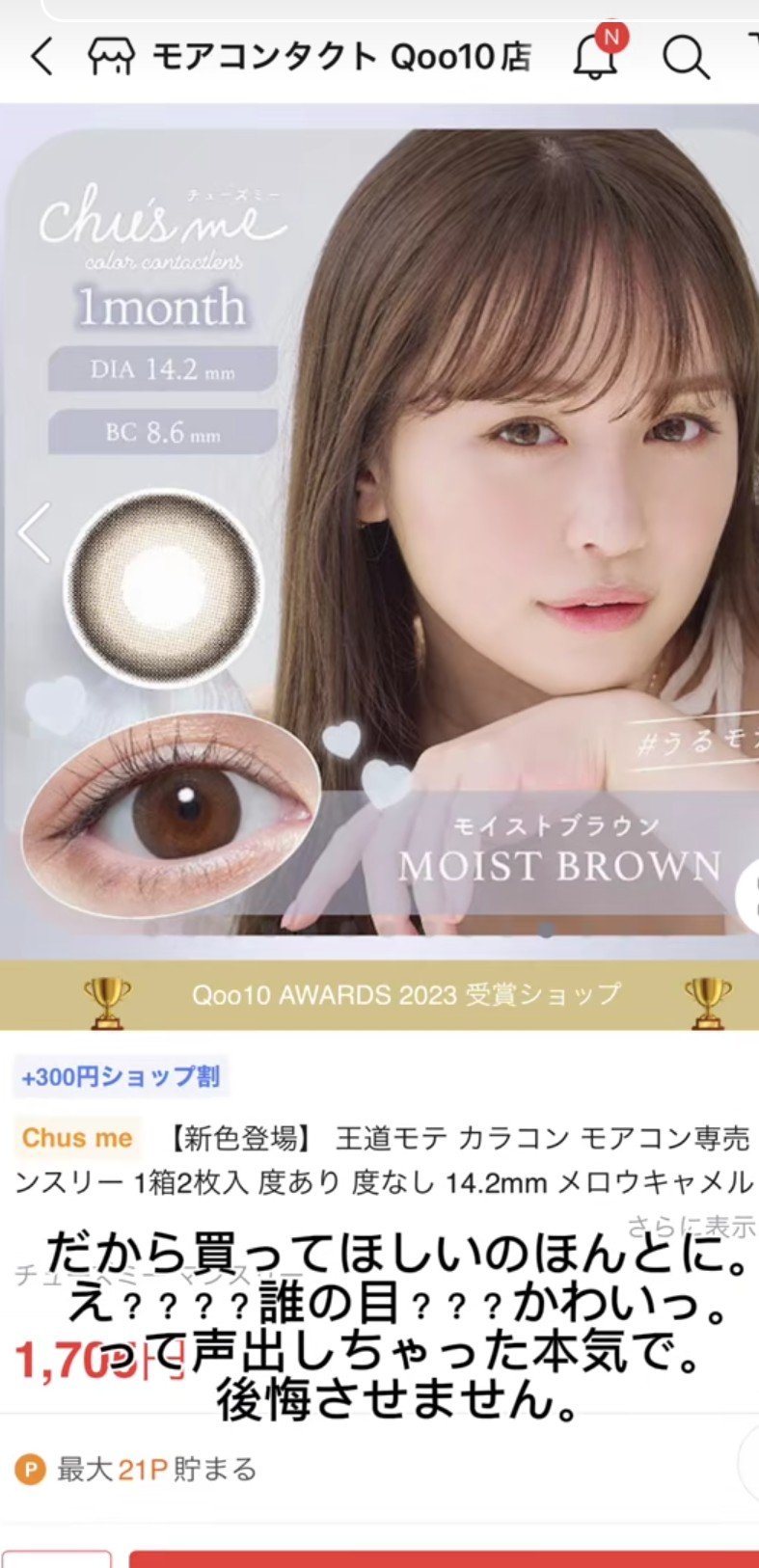 | カラコンランキング第73位 | 超ビビッドなのかと思いきや自然に瞳に馴染んで めちゃくちゃ美しい発色 | 詳細を見る | ||