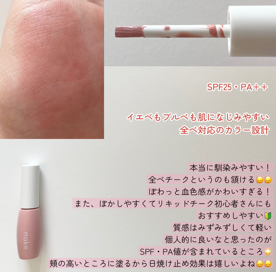 ✴︎ネイクさまからいただきました全ベチーク01ハツコイスキンケア以上、メイク未満がコンセプトのnake🤍🩷パーソナルカラーを問わず使用できるリキッドチーク!リキッドタイプだから濃さを調節しやすく、すっぴん風にもしっかりメイクにも◎SPF25P...