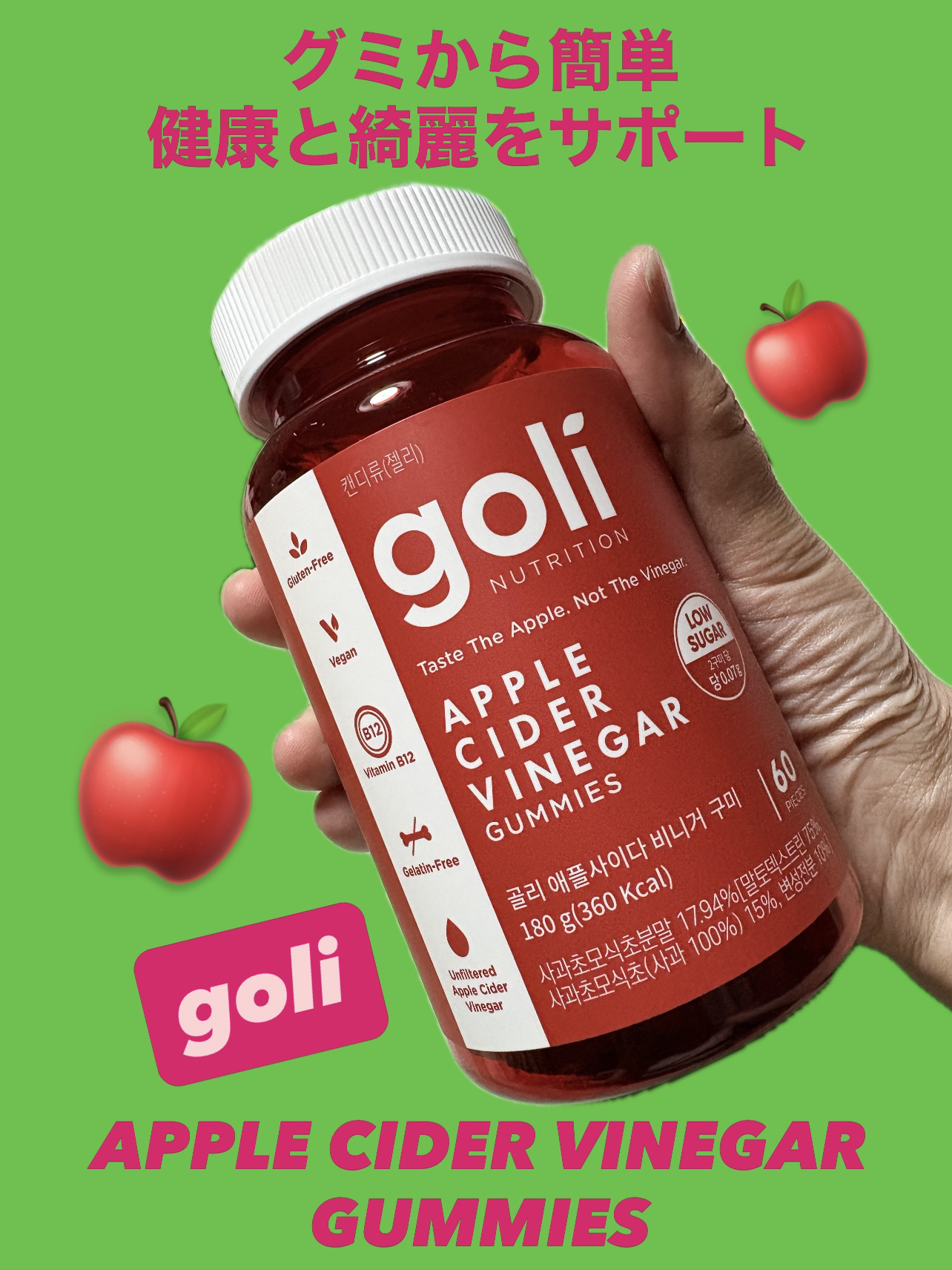 - アメリカ発・話題のアップルサイダービネガーグミ 美味しくて毎日続けやすい、新習慣 全米で注目のGoliグミ! ヘルシーな毎日をサポートするスマートグミ 「飲む」から「噛む」へ
