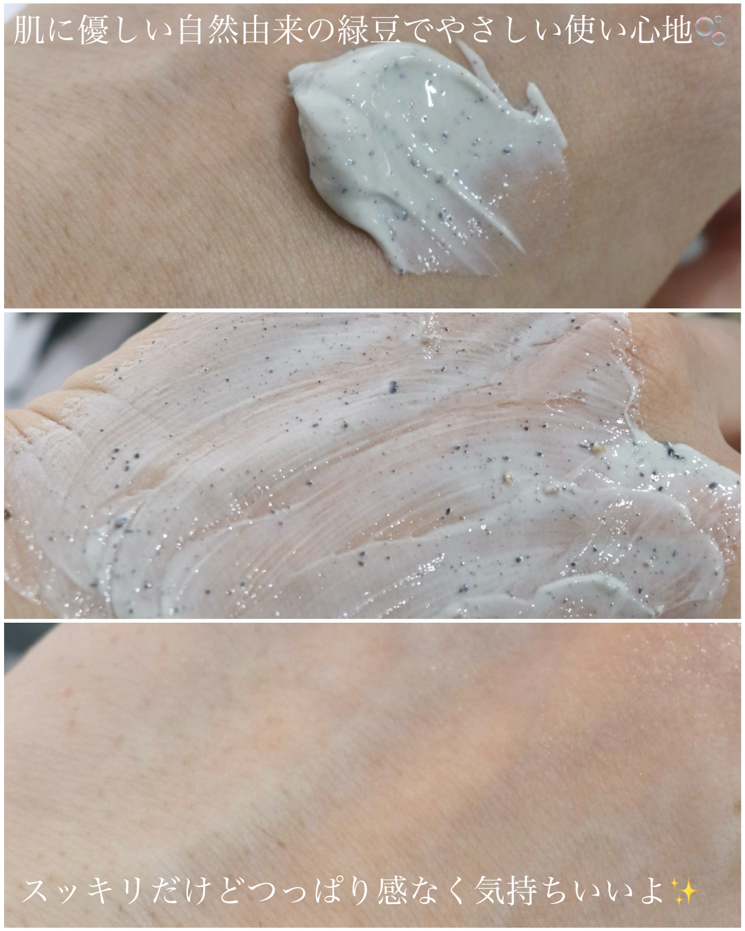 - 毛穴洗浄から角質除去まで。たった3分*1、時短毛穴ケア。 洗浄作用のある緑豆*2と6種のクレイパウダーが、毛穴に詰まった皮脂を吸着し、スッキリと除去します。 植物由来のスクラブで肌に優しい使い心地。 *1お手入れの目安時間 *2リョクトウ種子(スクラブ剤)
