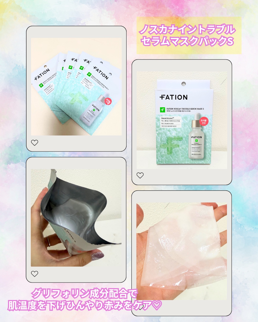★ノスカナイントラブルセラムS&ノスカナイントラブルセラムマスクパックS★FATIONのノスカナイントラブルのSシリーズは生CICAを配合した敏感肌鎮静に特化した特徴がありますセラムとパックを使用しました<ノスカナイントラブルセラムS>韓国内...
