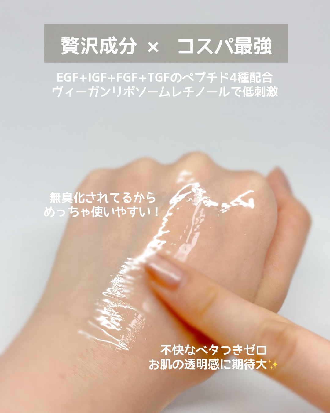 | スキンケアランキング第48位 | クリームよりこってりしてなくて、 どちらかというとすーっと伸びの良い エッセンスのようなテクスチャーでした◎ | 詳細を見る | |