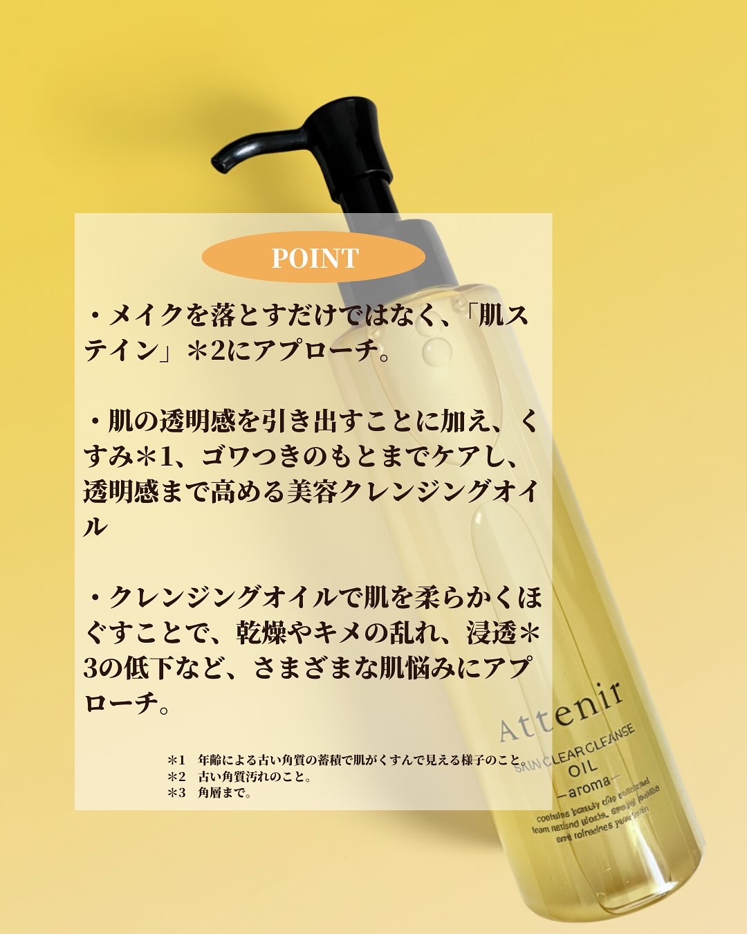 #PR#アテニア@attenir_officialアテニア スキンクリアクレンズオイル リフレシングシトラスの香りクレンジングでくすみ*1ケアメイクを落とすだけではなく、「肌ステイン」*2にアプローチし、肌の透明感を引き出す...