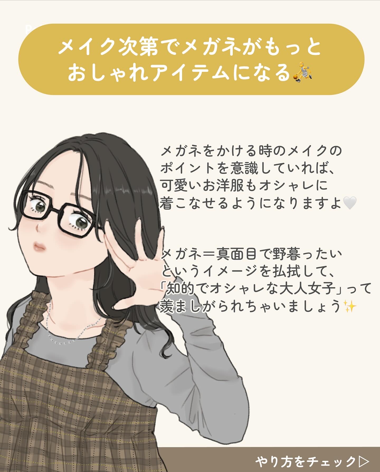 メガネに似合うメイクって難しくないですか? 私はバッチバチに目が悪く、コンタクトがないと生きていけないのですが メイクして、メガネかけて、鏡をみて一言。 「な、何か…浮いてる!変!これで出かけるの!?」 視力矯正用のメガネはもちろん、伊達メガネにも使えるポイントがありますのでぜひ見ていってください🤗